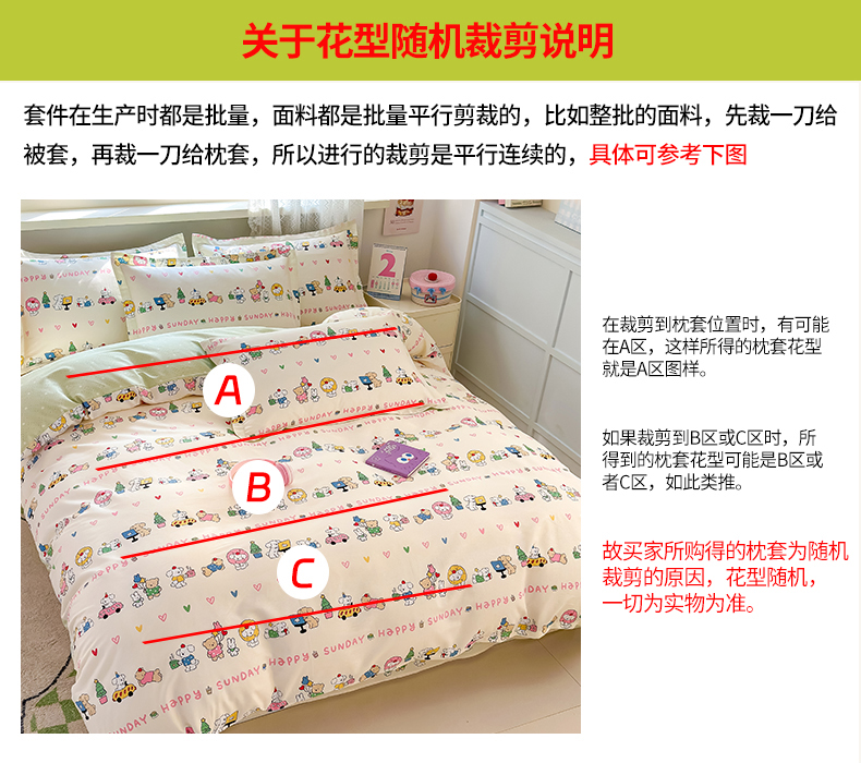(总)拾物记 2023新款喷气全棉卡通小清新系列单被套,欢乐萌熊,奶油兔-红