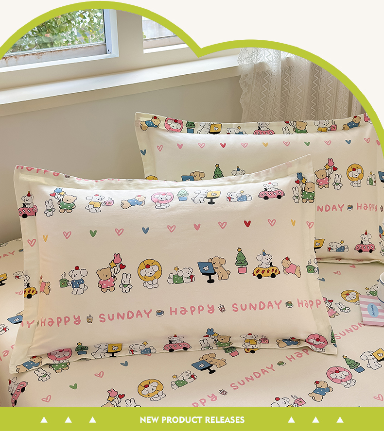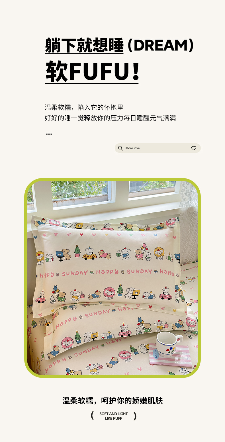 (总)拾物记 2023新款喷气全棉卡通小清新系列枕套,欢乐萌熊,奶油兔-红