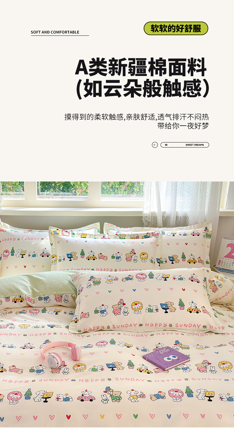 (总)拾物记 2026新款第一批12868A类全棉单品床单系列,森林伙伴,爱心喵,彩虹兔,草莓小狗,乘风宇宙,刺绣潮声,点点森林熊,粉粉猫咪酱,滚滚绣球团,花漫歌,简笔小汪,镜子海洋粉,开心派对,快乐宇航员,蓝星动物园,美梦花园,咪咕日常,太空卫士,太空熊,糖果幼儿园,糖纸童年,甜蜜纪念日,挽星河,星际仔仔,星星柯基,星星童话园,元气小布,云间甜梦,组合图