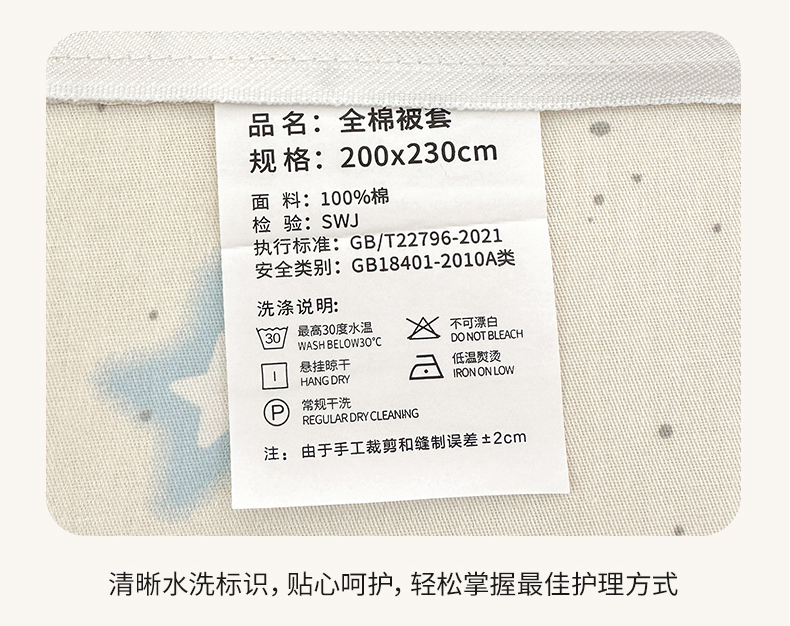 当前位置: 91家纺网 > 商品网购 > 床上用品 > 被套 > 拾物记 2026新款第一批12868A类新疆全棉单品被套系列(预留7-9厘米的缩水尺寸,加厚金属双拉链头、暗线四面锁边,四角全棉绑带) 星星童话园
