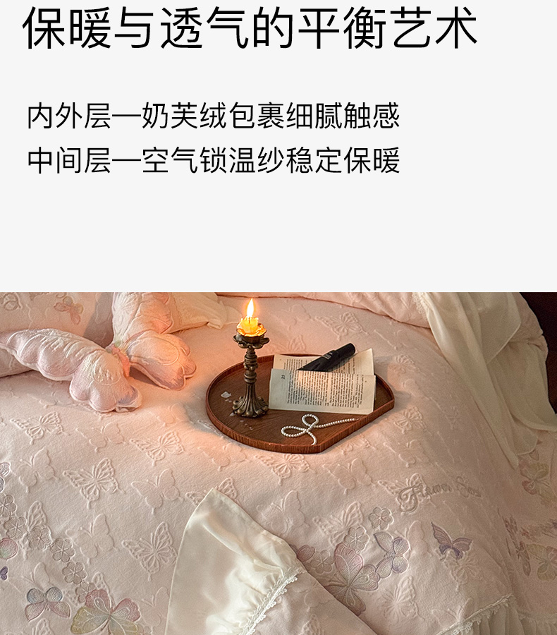 商品名称:(总)卡姿家纺 2025秋冬德国奶芙绒提花雪纺花边— 维密蝴蝶
