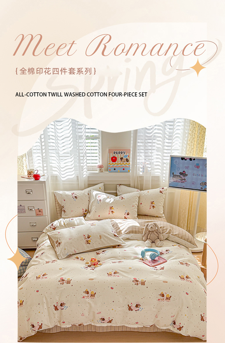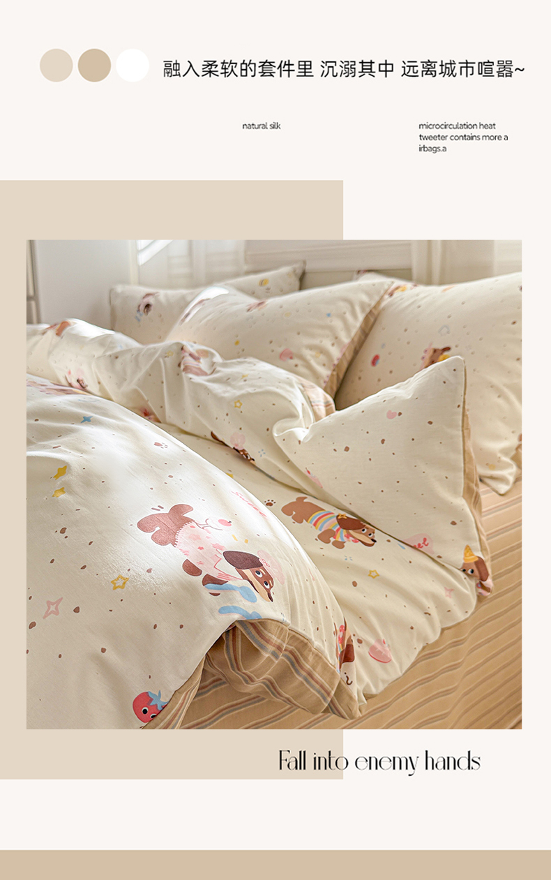 当前位置: 91家纺网 > 商品网购 > 床品套件 > 四件套 > 全棉普通四件套 > 曼之夏 2025新款全棉纯棉印花四件套 点点小腊肠