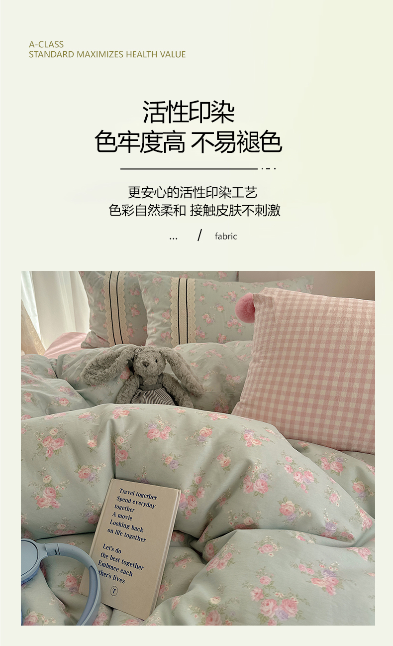 (总)三朵家纺 2026新款云柔水洗棉大花边A类韩版四件套,爱上樱桃,半岛玫瑰,草莓兔,梵高印象,花花熊仔,漫漫花香,沐语花朝,俏皮樱桃,青樱花梦
