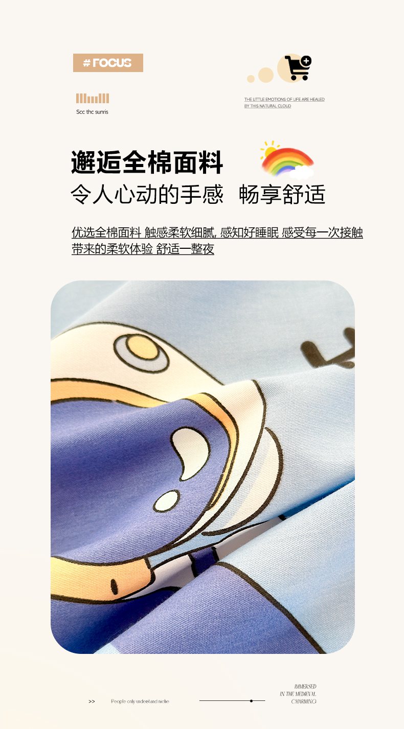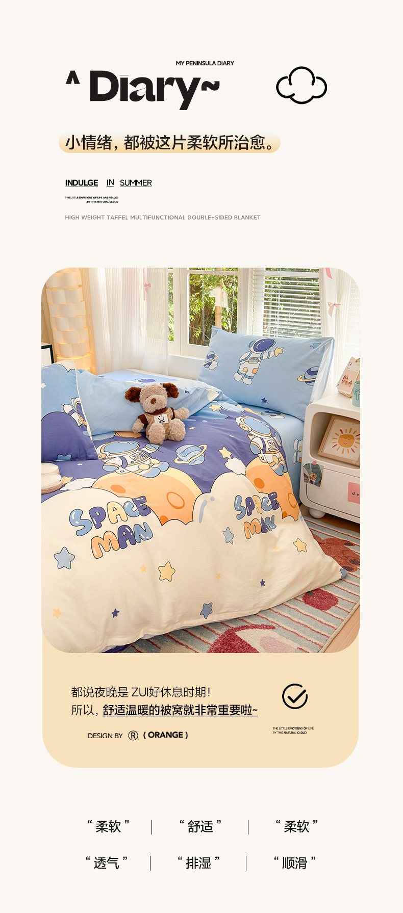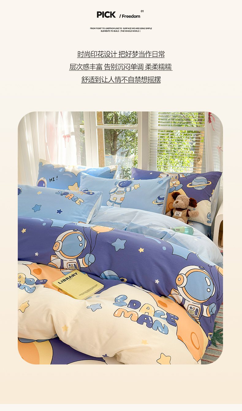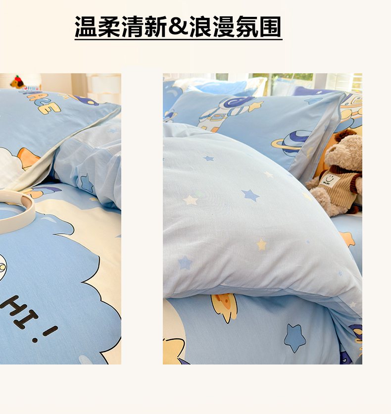 当前位置: 91家纺网 > 商品网购 > 床品套件 > 四件套 > 全棉普通四件套 > 清雅福 2025新款全棉柔软印花系列四件套 太空梦乐园