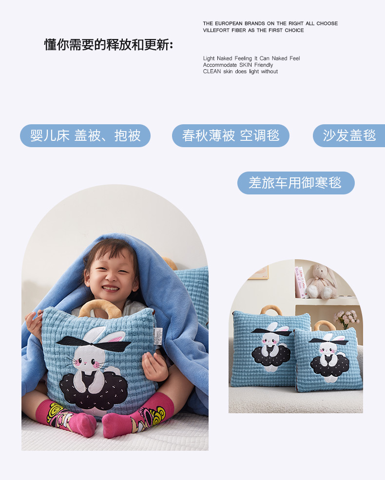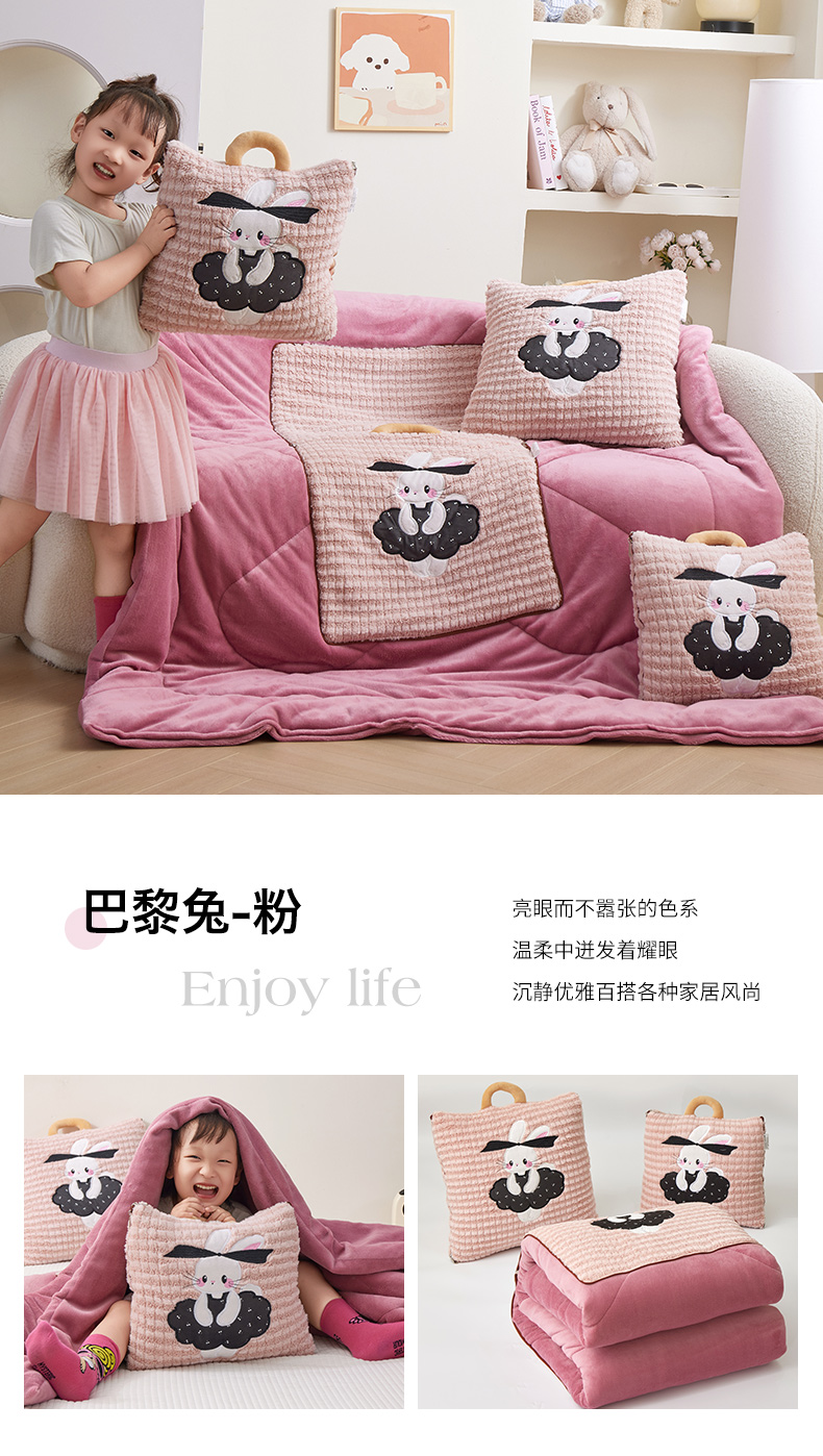 (总)宝马家纺(原梦童画) 2025新款加厚巴黎兔抱枕被,巴黎兔-蓝,巴黎兔-粉,巴黎兔-灰,巴黎兔-咖,组合图
