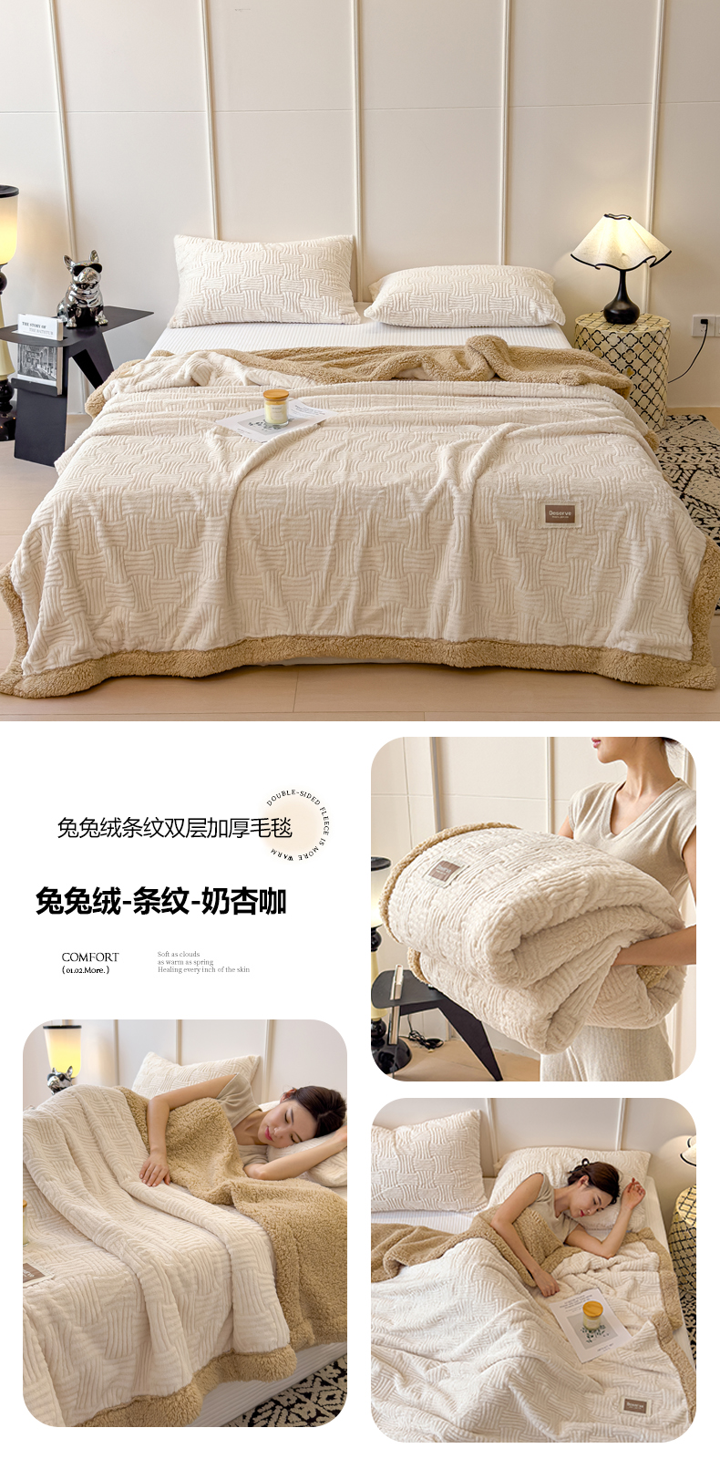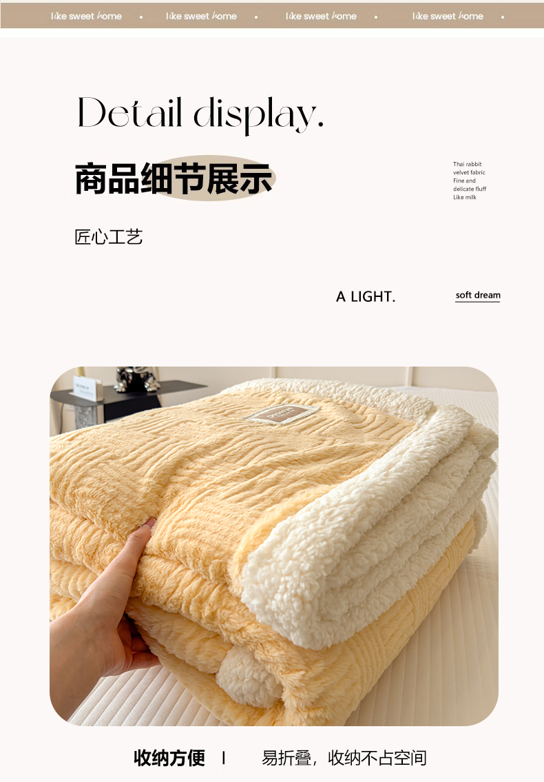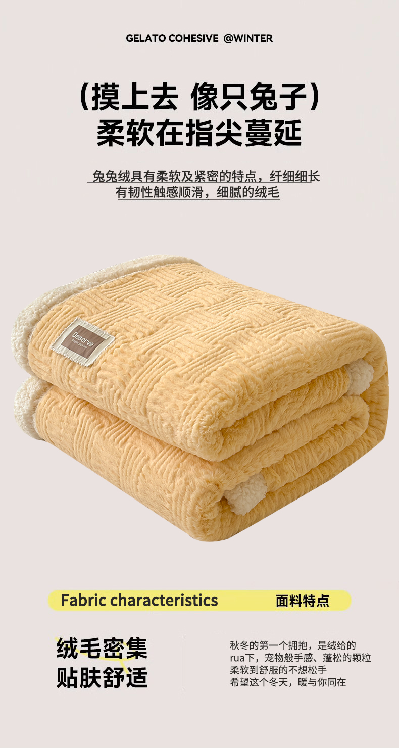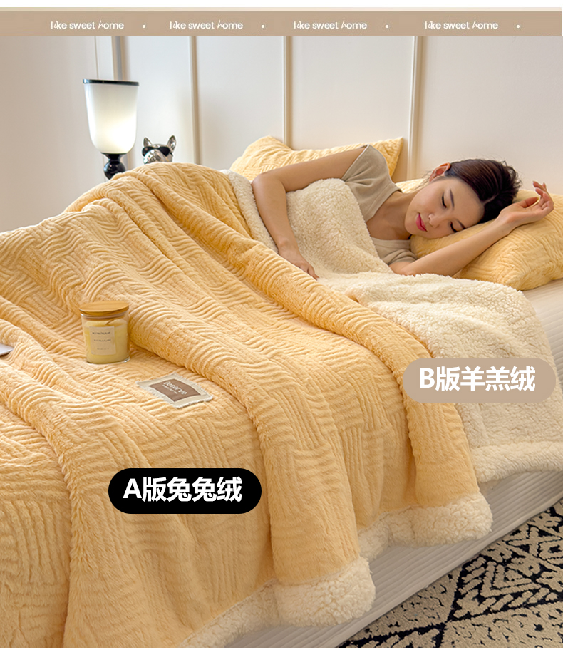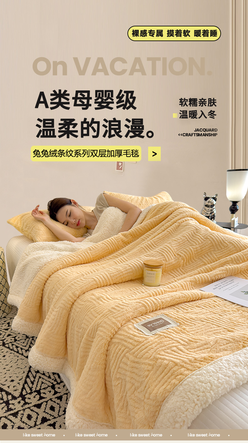 当前位置: 91家纺网 > 商品网购 > 毛毯休闲毯绒毯 > 毛毯 > 慕木家纺 2025新款A类高克重加厚兔毛绒双层毛毯斜纹条纹系列(跨境首选提供买家秀) 兔兔绒-条纹-奶油黄