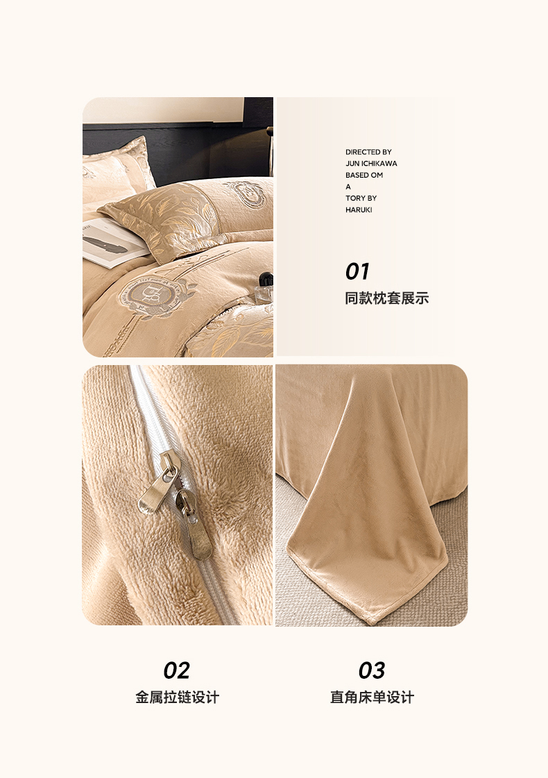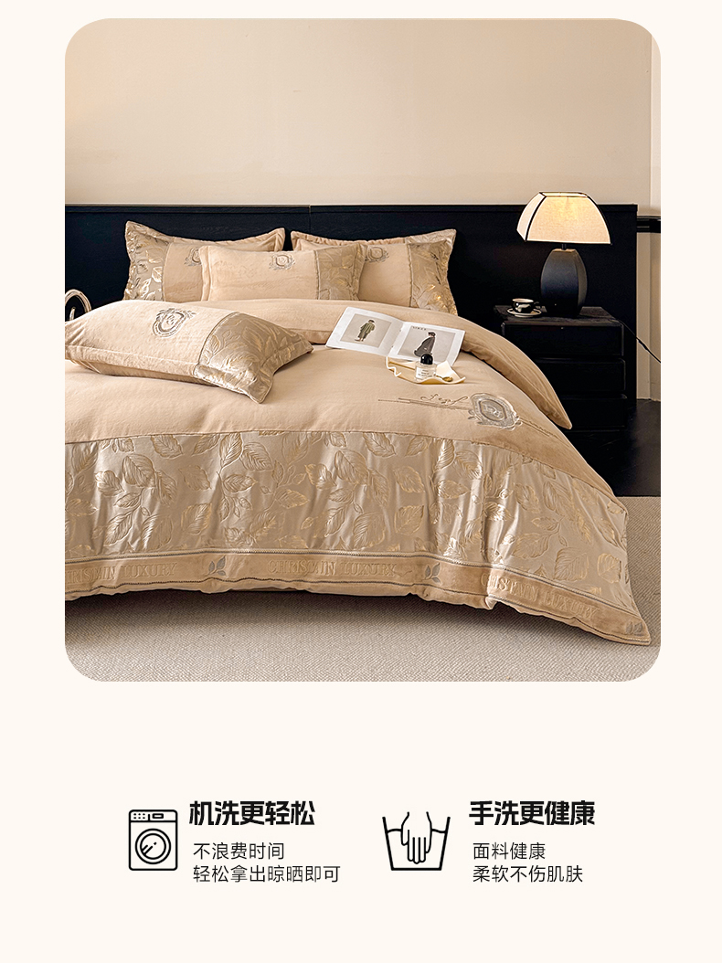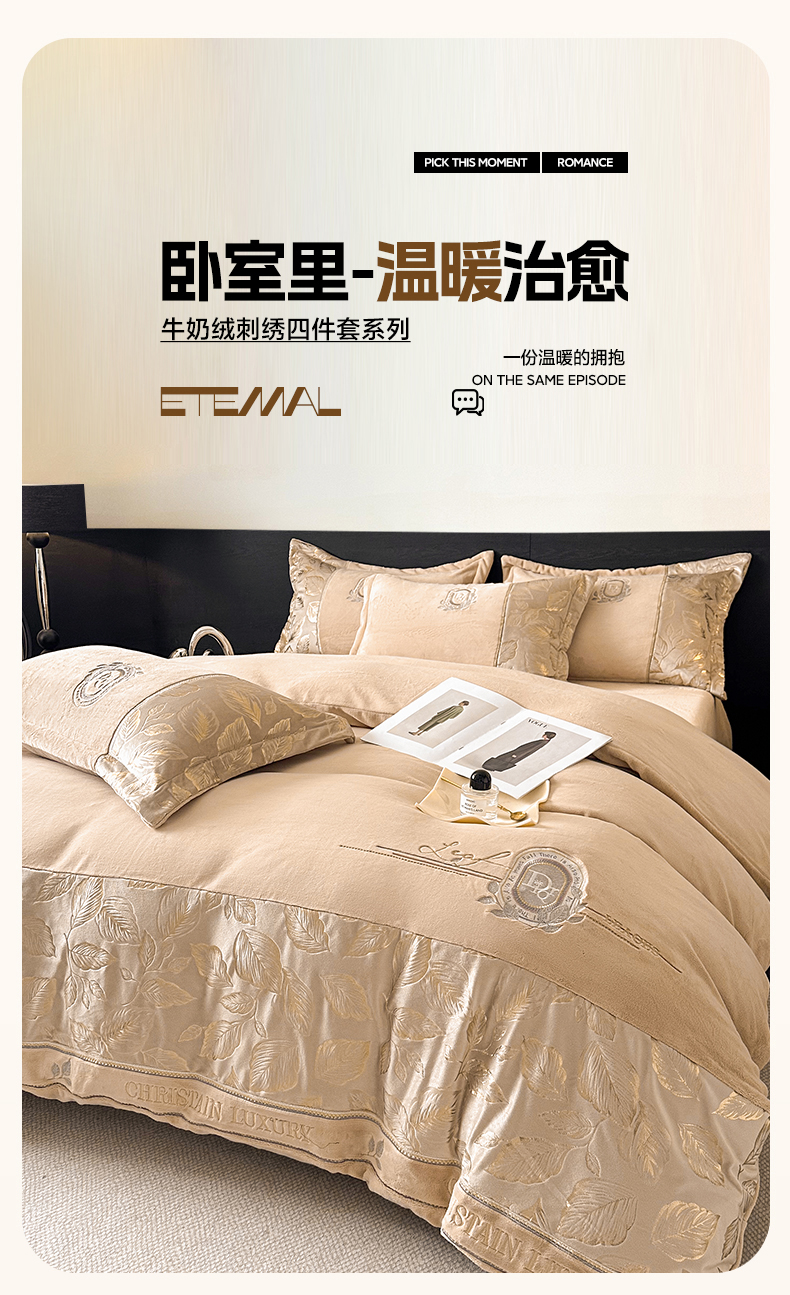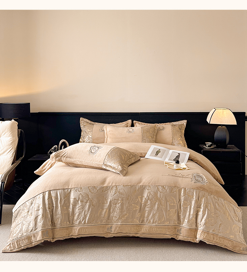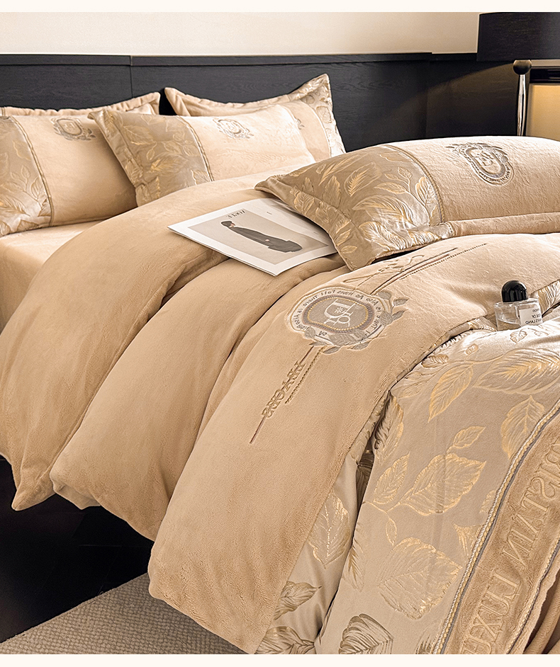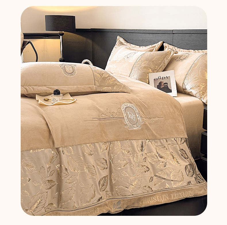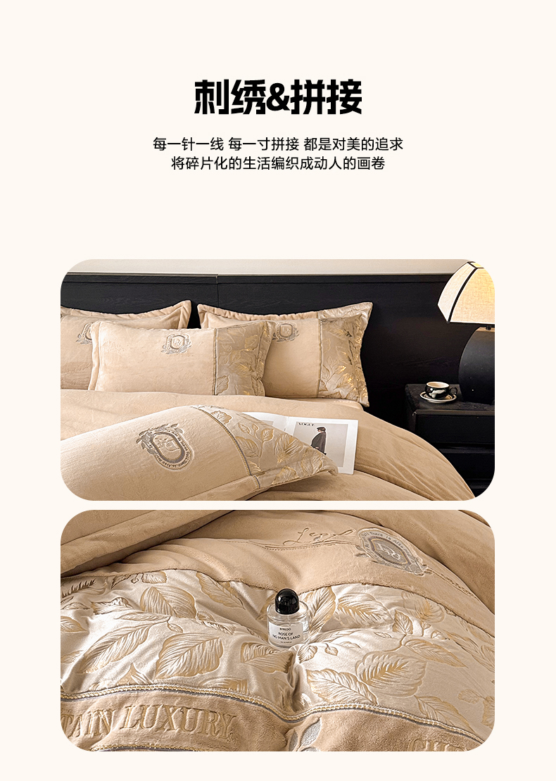 商品名称:帝王家纺 2025新款冬季刺绣加厚保暖烫金牛奶绒四件套珊瑚绒轻奢高级感 香槟