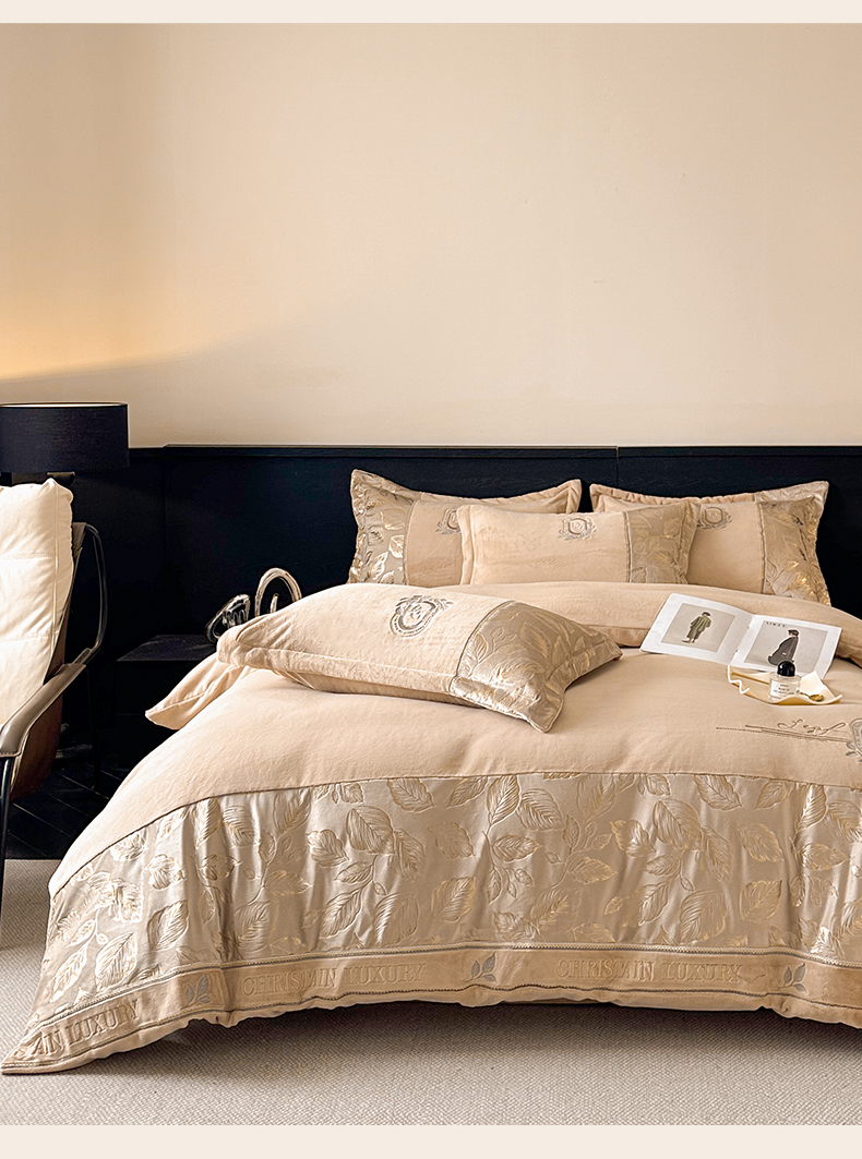 帝王家纺 2025新款冬季刺绣加厚保暖烫金牛奶绒四件套珊瑚绒轻奢高级感 香槟