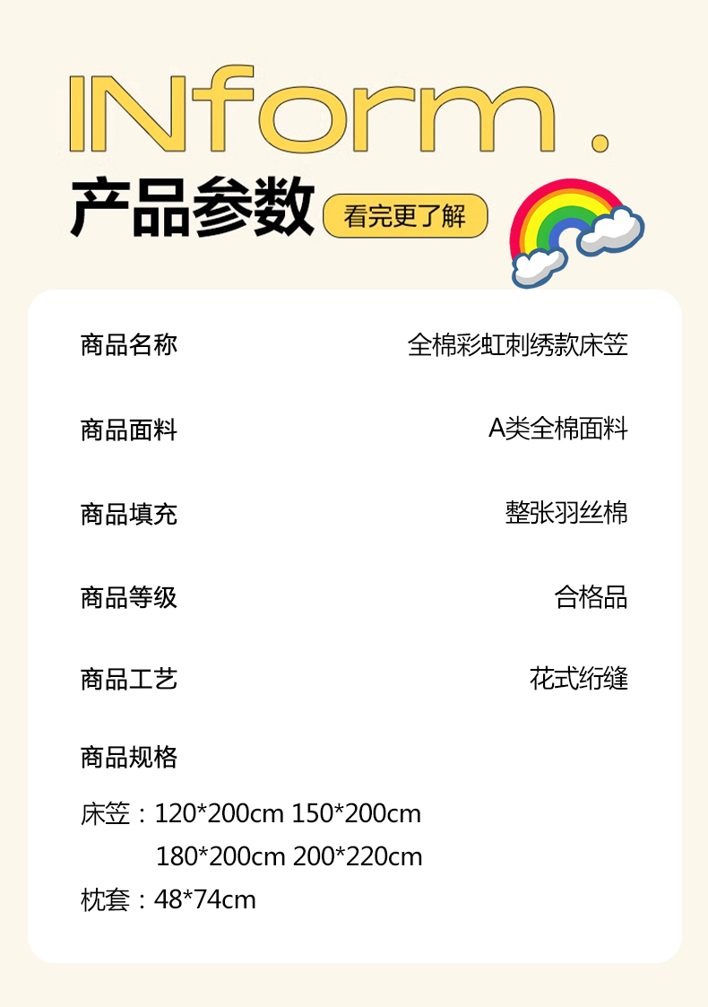 150x200cm单床笠+枕套一对 | ¥120.00 |
