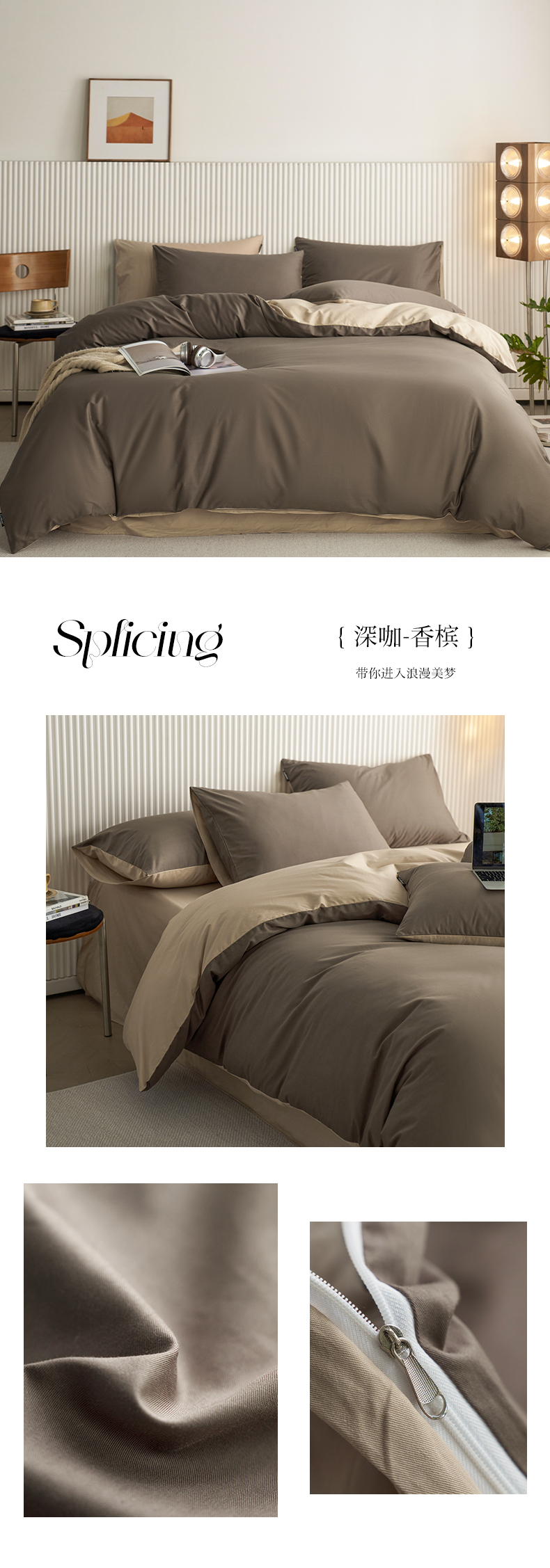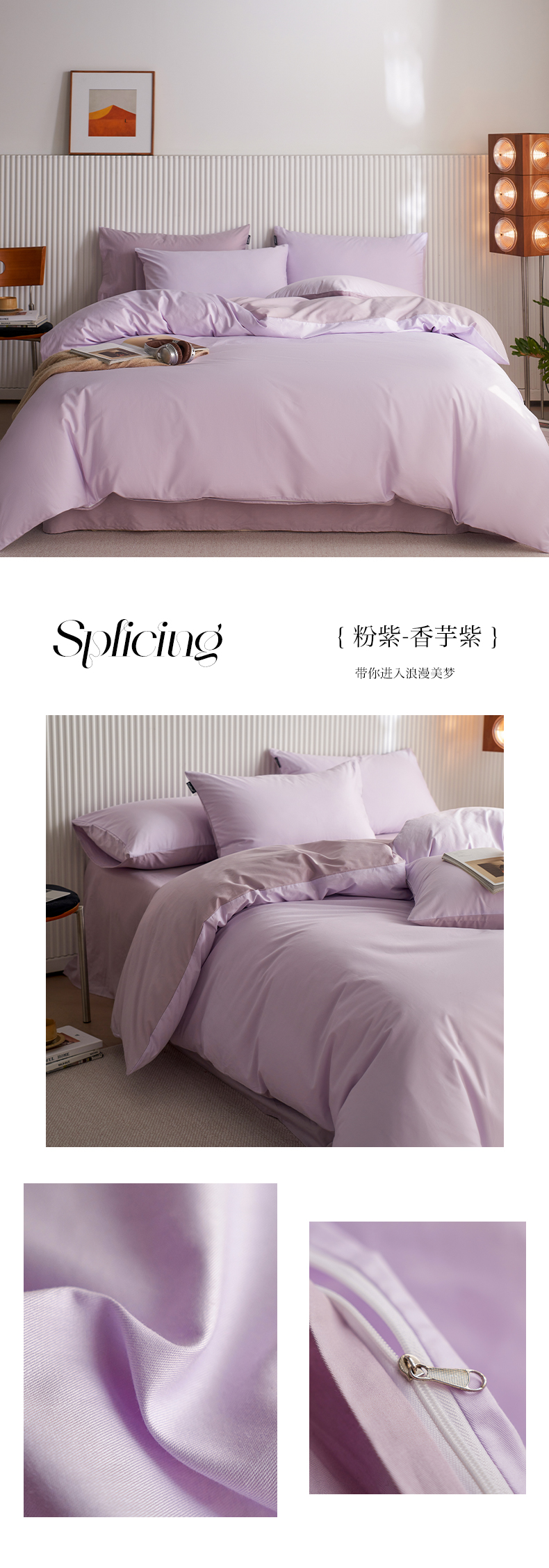 (总)小懒猪 2026新款13372A类双拼纯色全棉纯棉四件套 (提供买家秀)