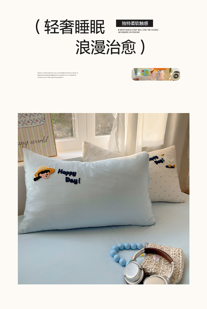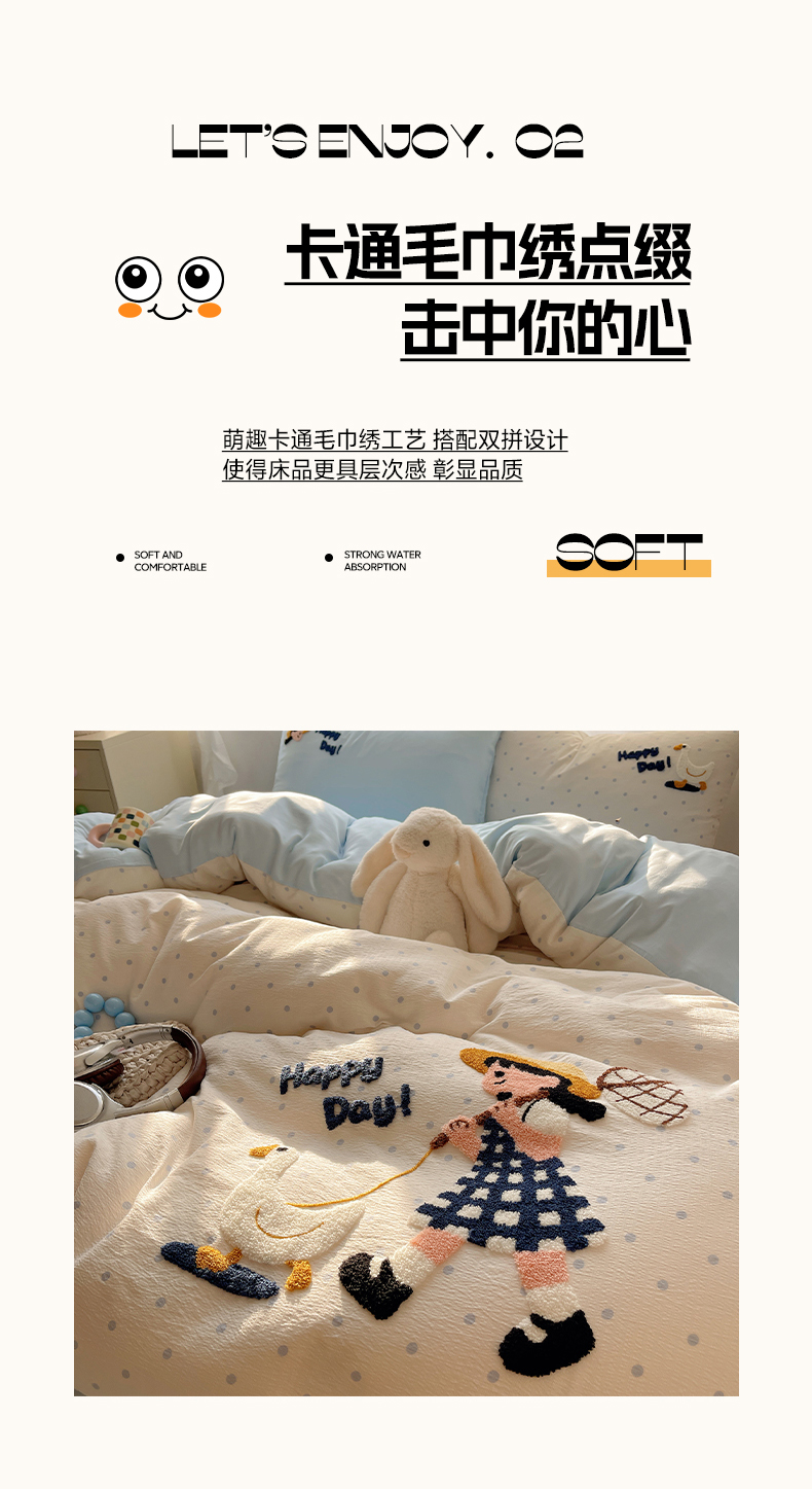 当前位置: 91家纺网 > 商品网购 > 床品套件 > 四件套 > 其它四件套 > 韩都家居 2026春夏新款卡通云朵棉毛巾绣四件套-系列一 小女孩
