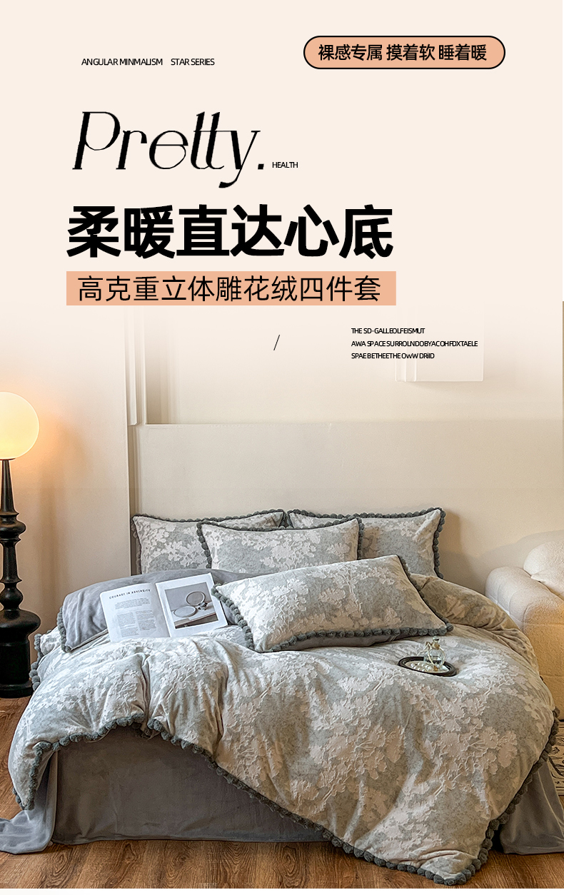 当前位置: 91家纺网 > 商品网购 > 床品套件 > 四件套 > 雕花绒四件套 > 梵克保罗 2025新款立体雕花绒球球四件套(提供买家秀) 素韵