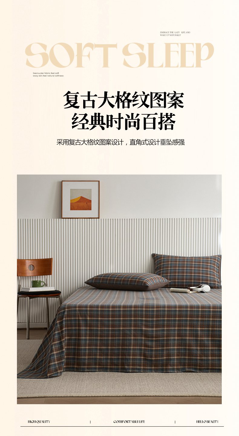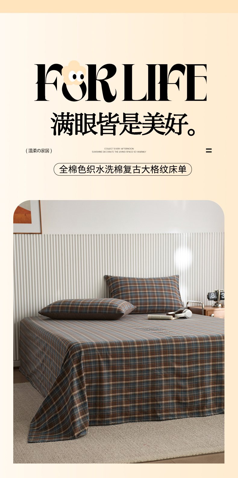 (总)启程家纺 2026新款纯棉水洗棉复古大格系列多规格纯棉床单,摩登大黑,摩登大咖,摩登大绿,苏格兰藏蓝大格,苏格兰红大格,苏格兰黄大格,苏格兰蓝大格