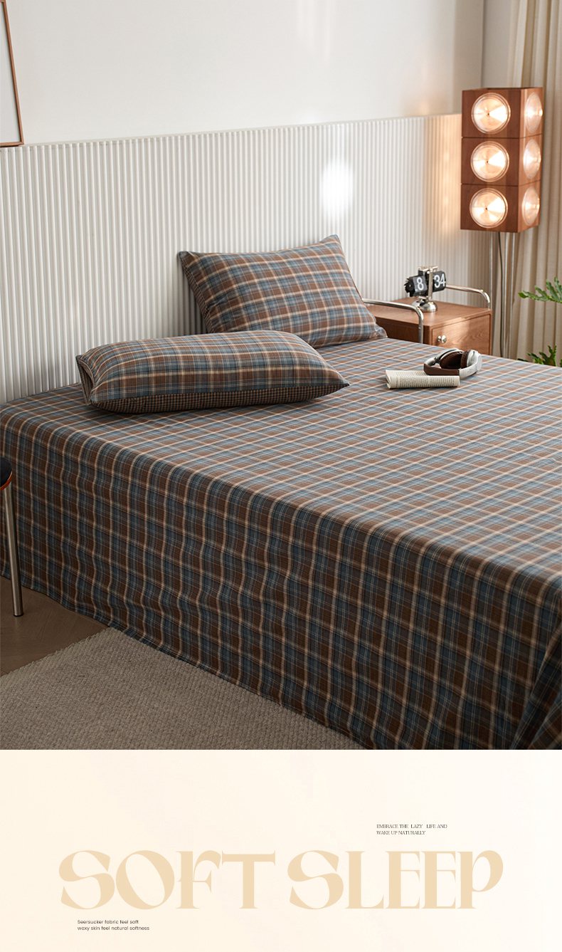 商品名称:启程家纺 2026新款纯棉水洗棉复古大格系列多规格纯棉床单 苏格兰蓝大格