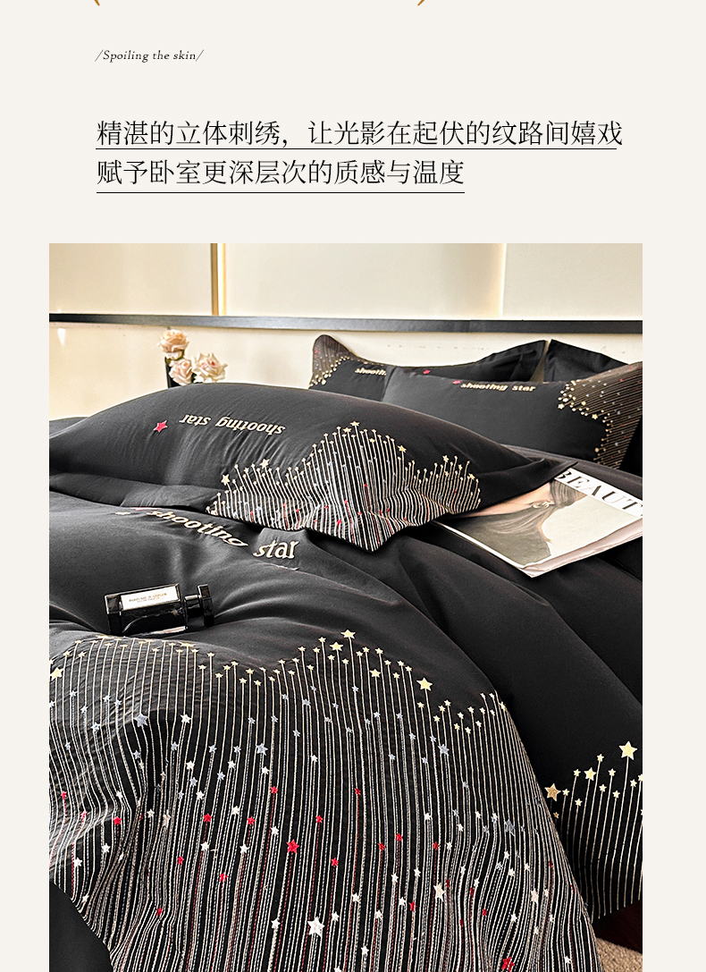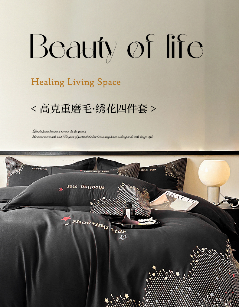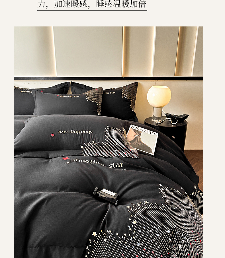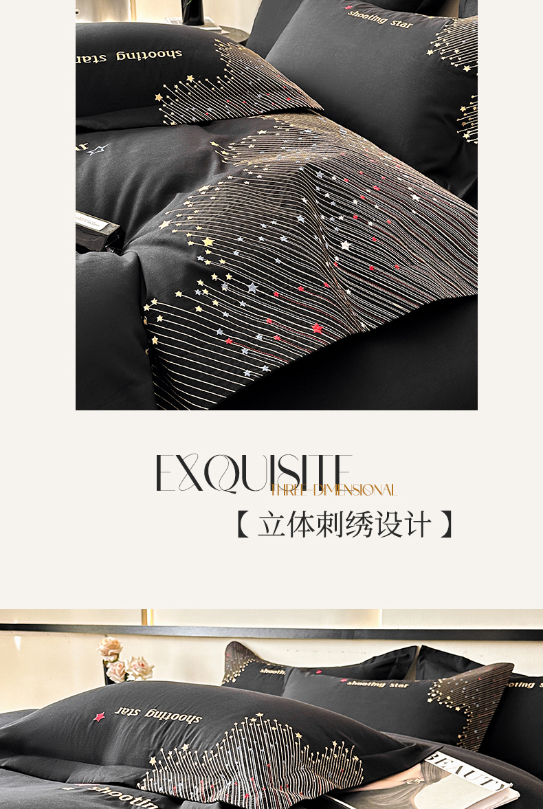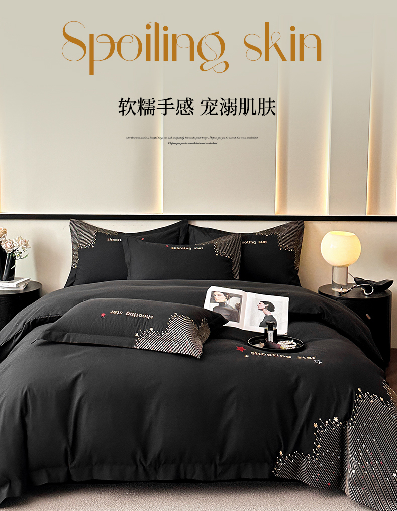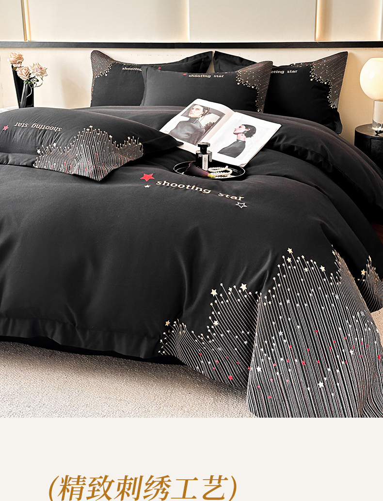 商品名称:苏源家居 2026新款轻奢风刺绣亲肤棉磨毛四件套 璀璨-曜石黑