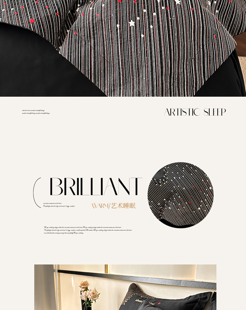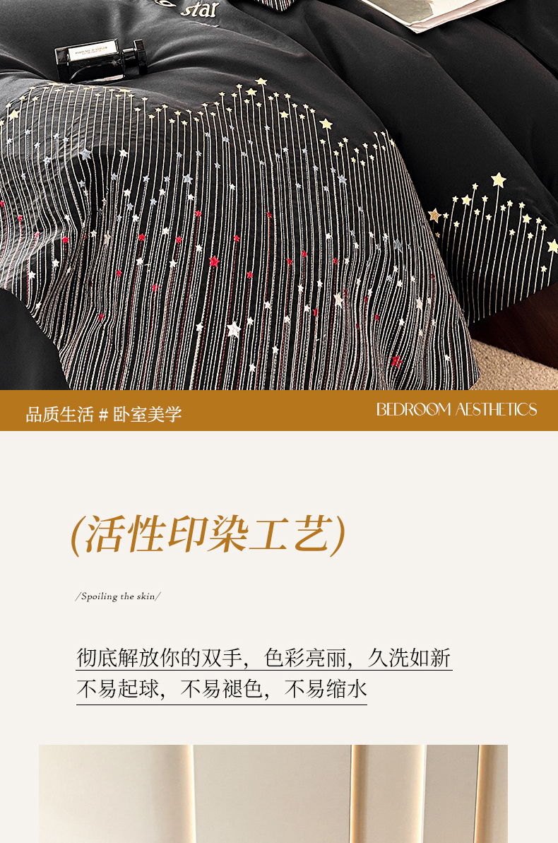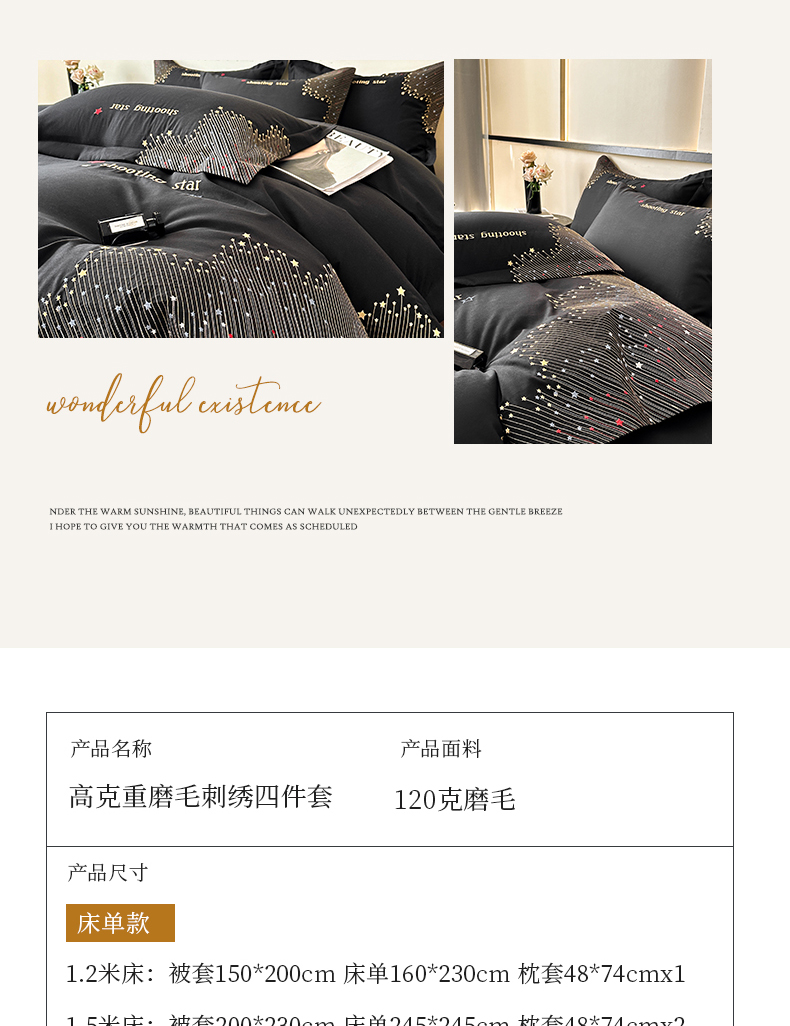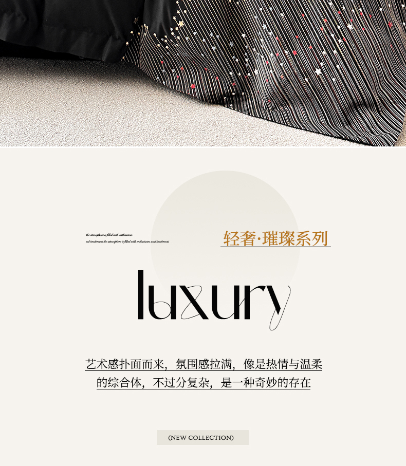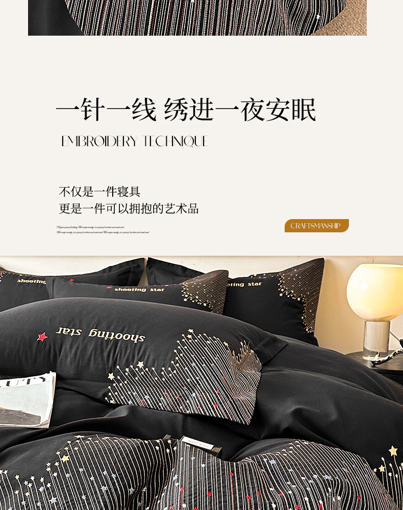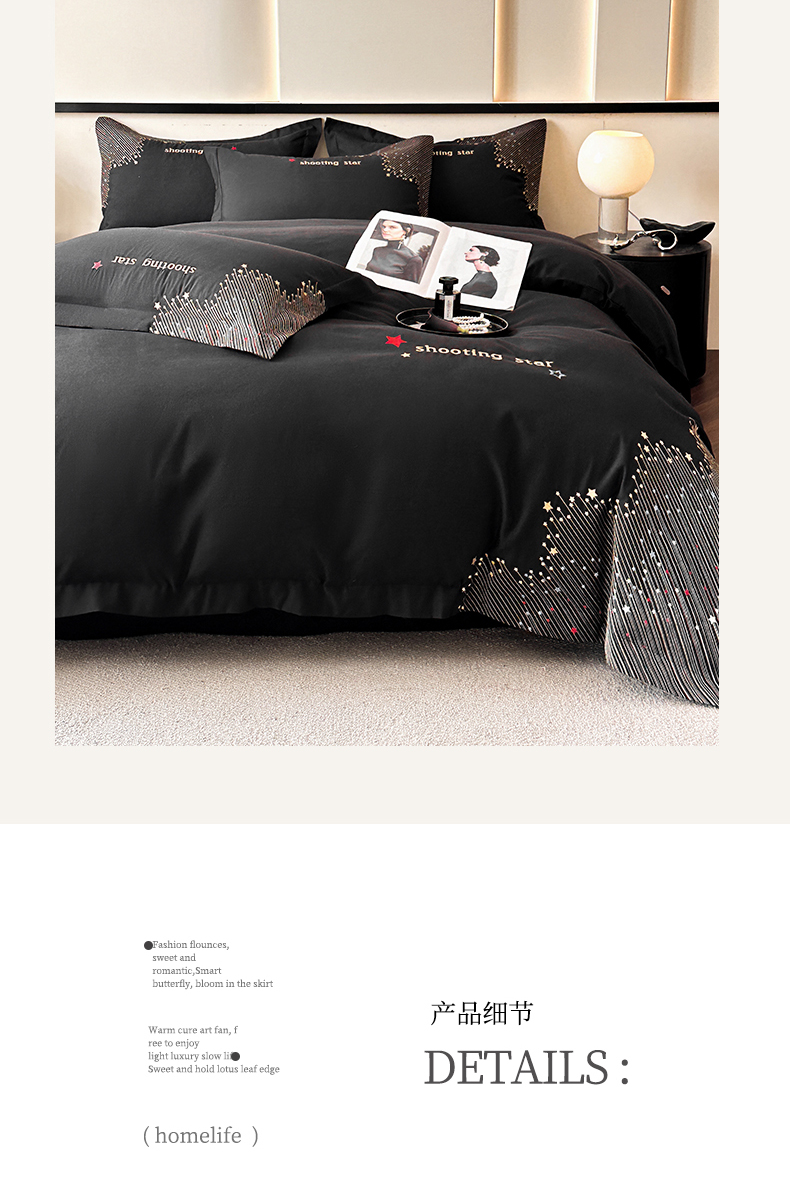 商品名称:苏源家居 2026新款轻奢风刺绣亲肤棉磨毛四件套 璀璨-曜石黑