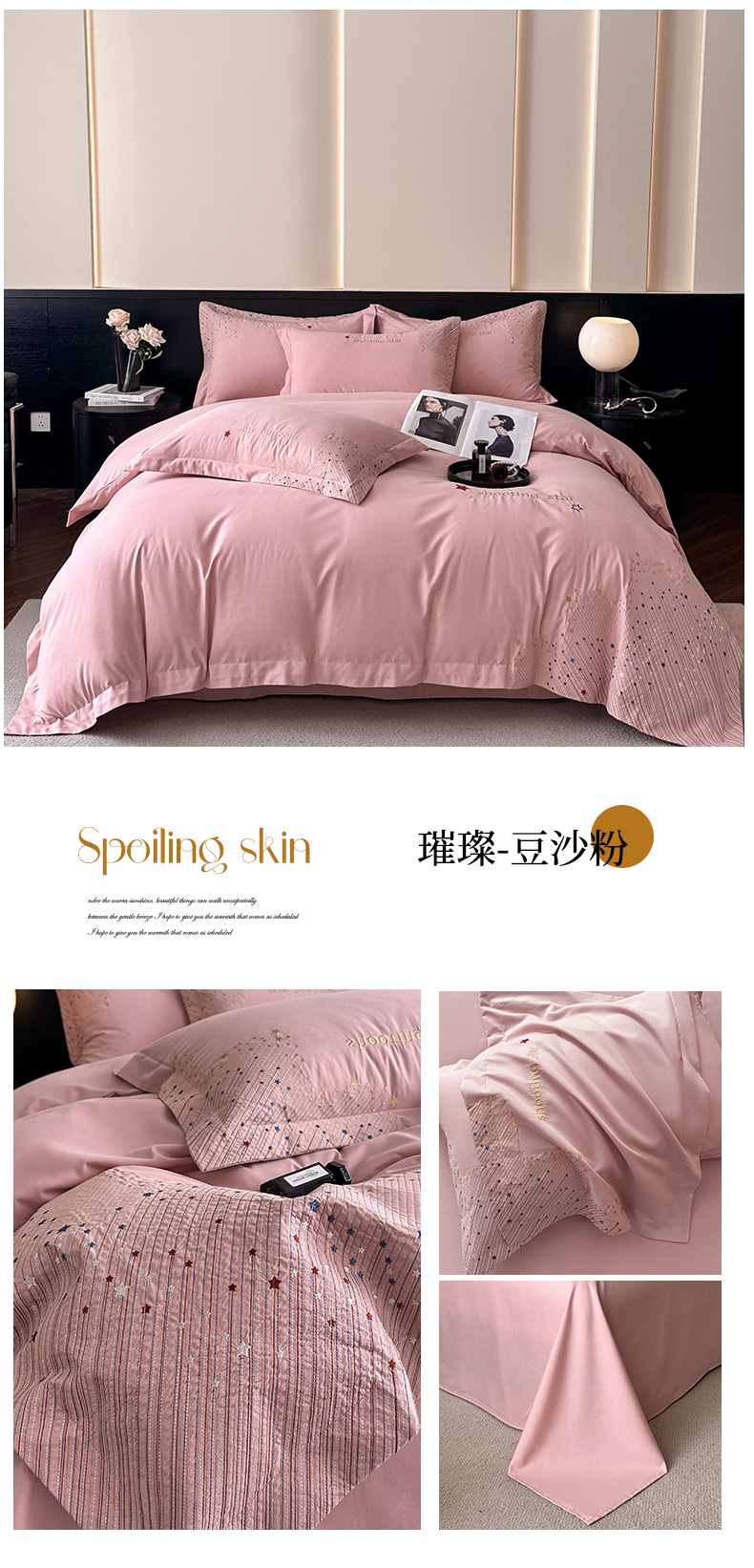 (总)苏源家居 2026新款轻奢风刺绣亲肤棉磨毛四件套,璀璨-豆沙粉,璀璨-高级灰,璀璨-天空蓝,璀璨-曜石黑