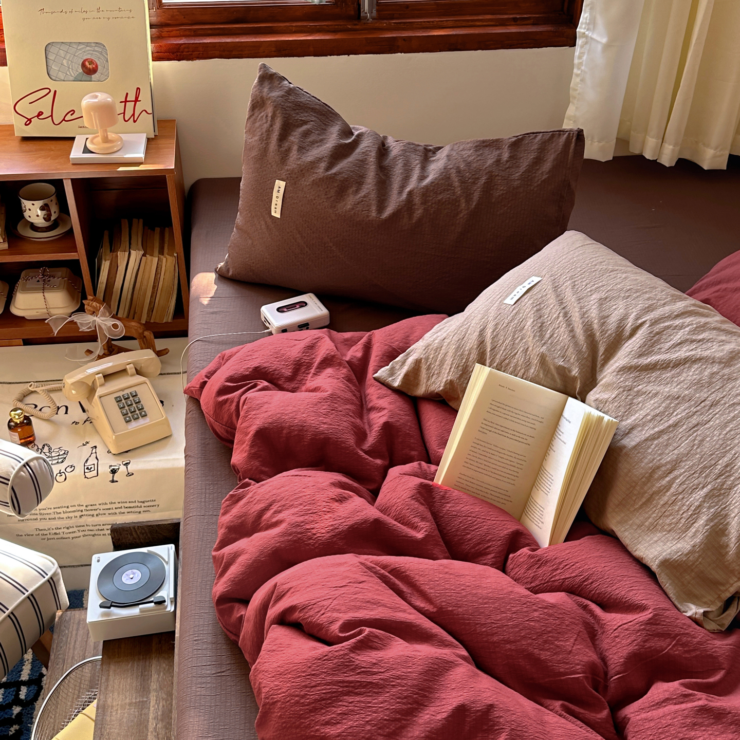 当前位置: 91家纺网 > 商品网购 > 床品套件 > 四件套 > 色织四件套 > 阿曼达 2026新款水洗全工艺印染纯色混搭风莫兰迪色系四件套 混搭风-粉色