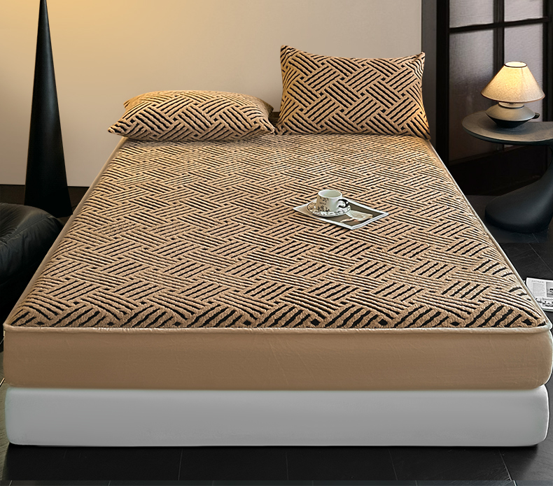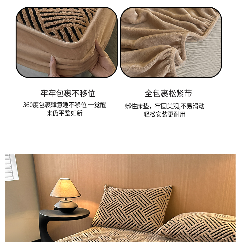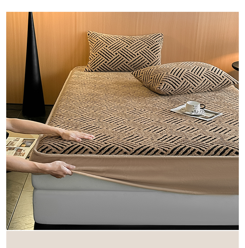 (总)可恩欣 2026新款舒棉绒提花防水床笠-利奥,利奥-皓月,利奥-杏粉,利奥-玄灰,利奥-远蓝,利奥-云咖