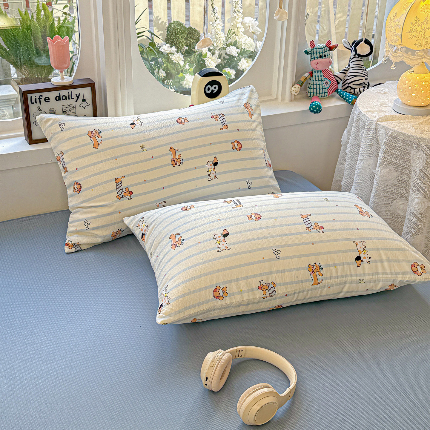 (总)朵朵家纺 2026新款云感木棉皱皱纱双层纱印花单枕套枕套单件单品枕套,豹纹KT,星星人,安琪拉,北半球,波点草莓,春野集,蛋糕喵,繁星春水,好朋友,来财梦,兰溪,萌宠派对,芊芊花语,森林乐园,森林密语,甜茶,小新e族,小樱桃