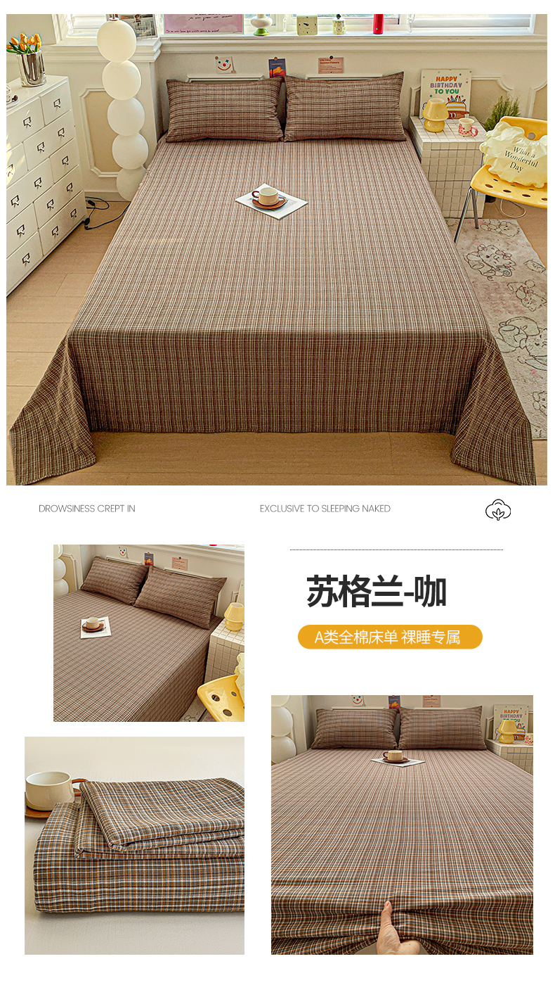 (总)柠萌家居 2026新款全棉A类色织水洗棉母婴级简约格子三件套床单,诺卡-咖,倾城-粉,倾城-蓝,倾城-绿,苏格兰-红,苏格兰-咖,苏格兰-卡其,组合