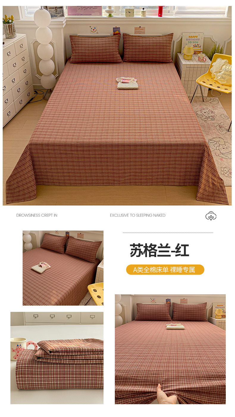 当前位置: 91家纺网 > 商品网购 > 床上用品 > 床单 > 柠萌家居 2026新款全棉A类色织水洗棉母婴级简约格子三件套床单 苏格兰-红
