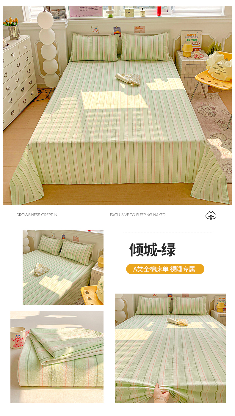 (总)柠萌家居 2026新款色织水洗棉四件套单被套,粉极细条,粉紫条,黄咖条,灰极细条,蓝咖条,绿极细条,绿紫条,米极细条,驼红条
