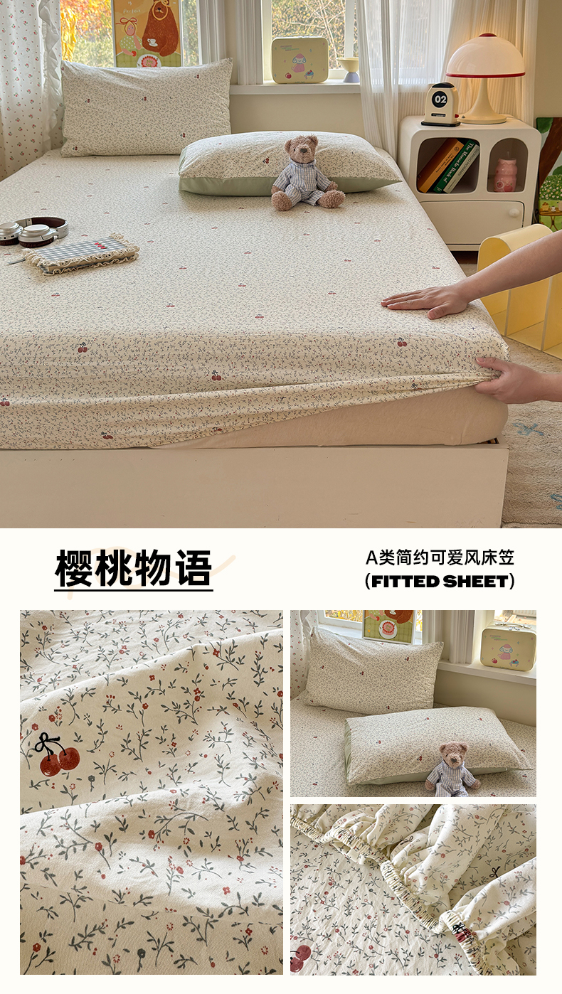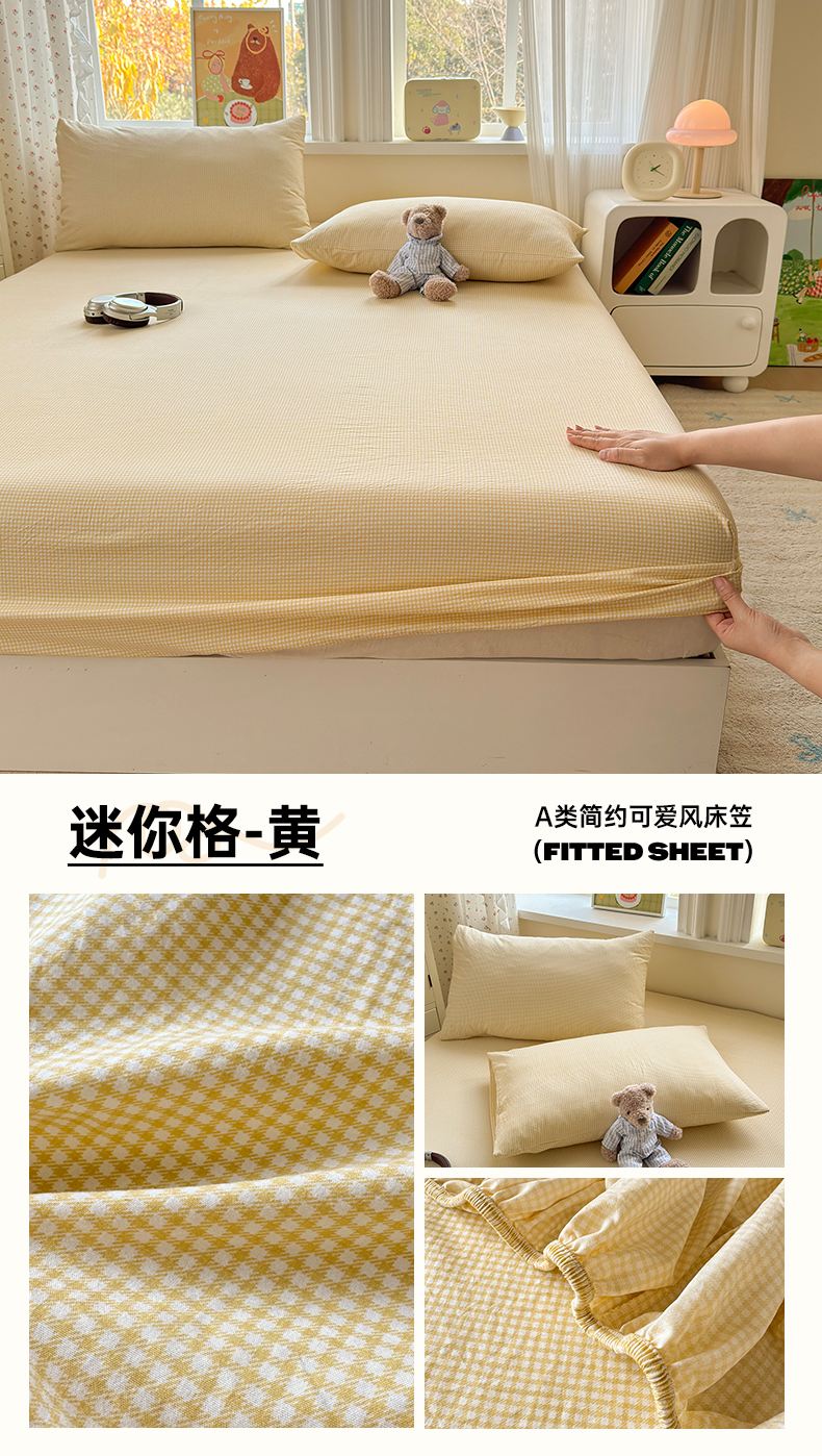 (总)沐芷 2026 【提供买家秀】古法水洗仿棉床笠席梦思床罩床垫防滑床套罩床笠三件套,萌物,甜梦糖豆,巴黎甜心,白月光,豹纹音乐,波点汪语,彩虹跳跳糖,漫游小鱼,萌犬游记,迷你格-黄,迷你格-蓝,奶味圆饼,暖意小熊,星仔,樱桃物语,组合图