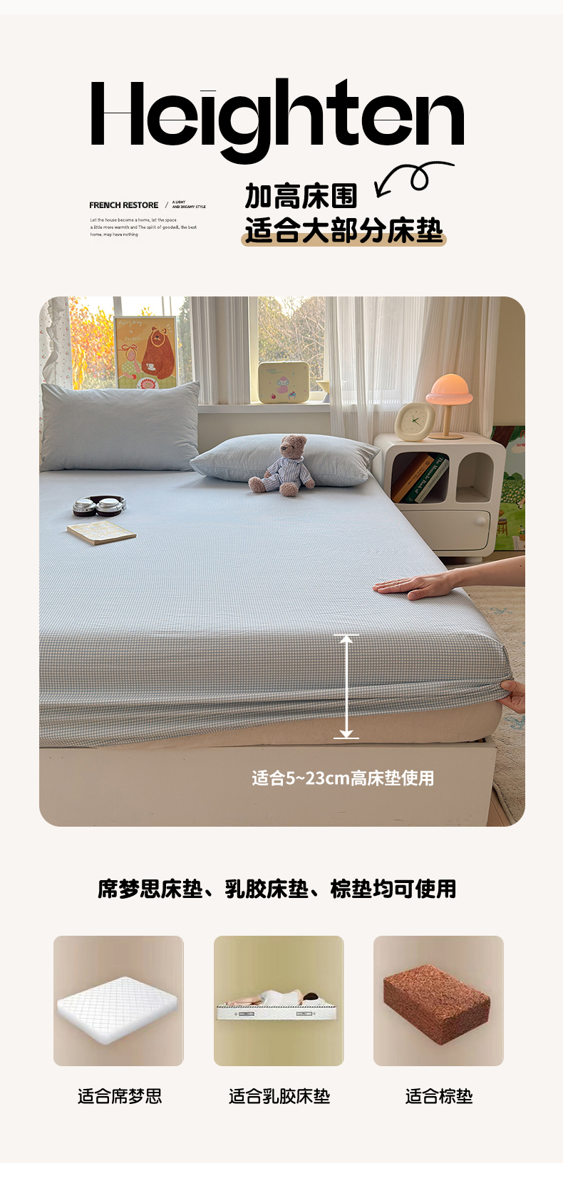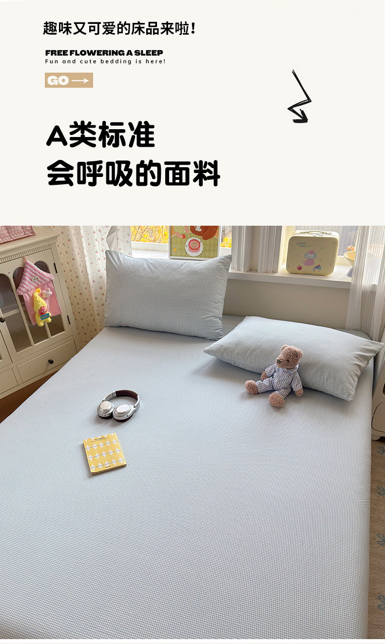(总)沐芷 2026 【提供买家秀】古法水洗仿棉床笠席梦思床罩床垫防滑床套罩床笠三件套,萌物,甜梦糖豆,巴黎甜心,白月光,豹纹音乐,波点汪语,彩虹跳跳糖,漫游小鱼,萌犬游记,迷你格-黄,迷你格-蓝,奶味圆饼,暖意小熊,星仔,樱桃物语,组合图