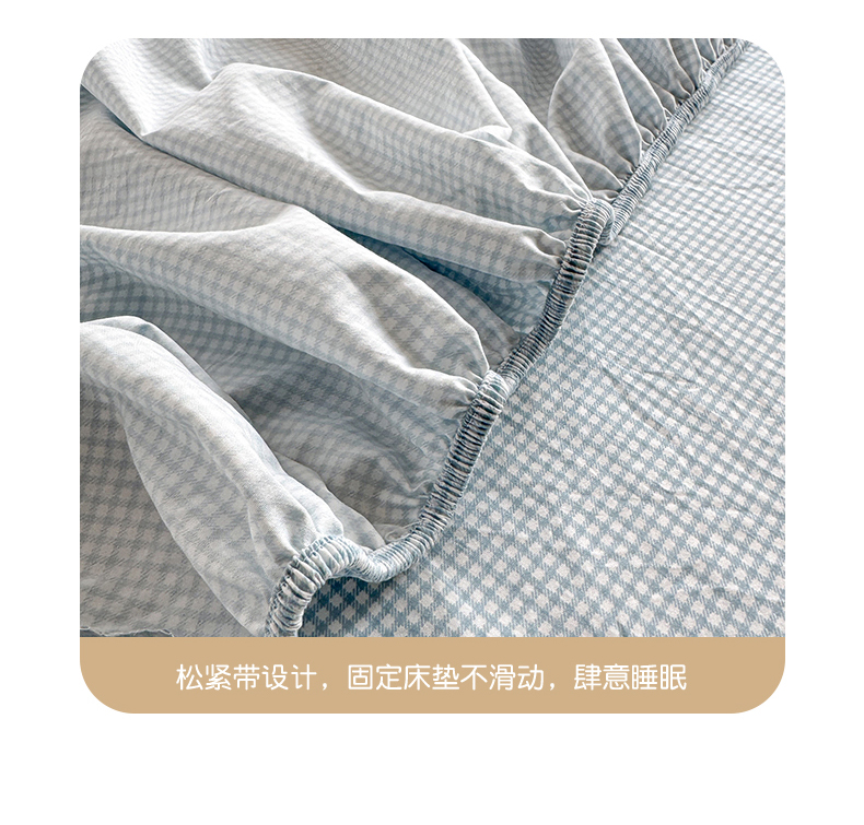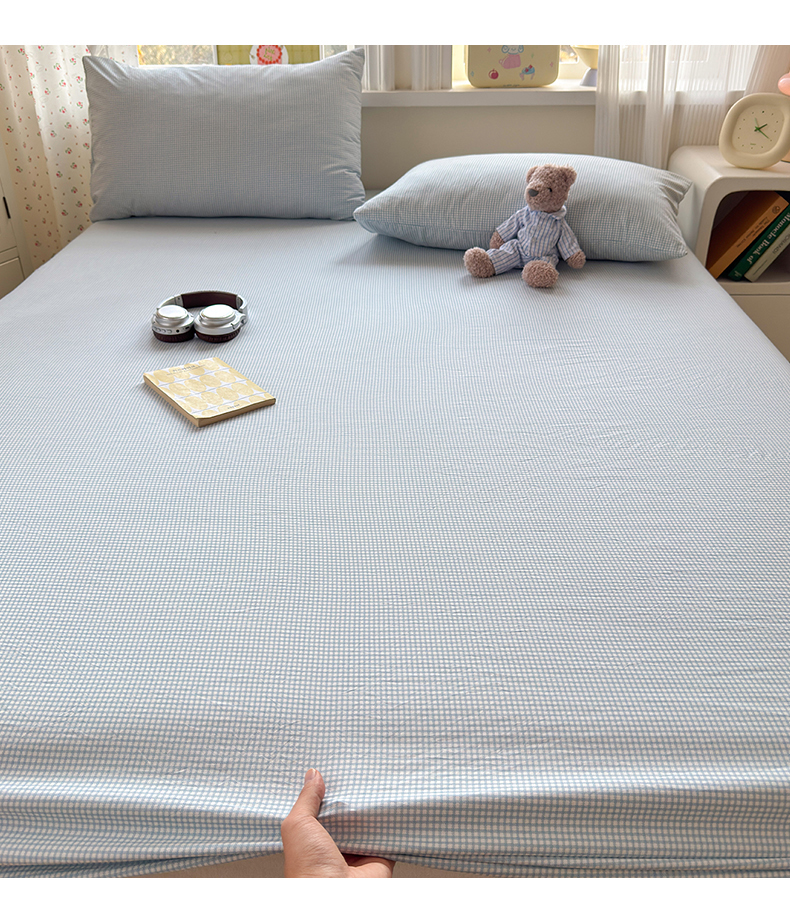 • 91家纺网 家纺一手货源 找家纺 沐芷 2026 【提供买家秀】古法水洗仿棉床笠席梦思床罩床垫防滑床套罩床笠三件套 迷你格-蓝