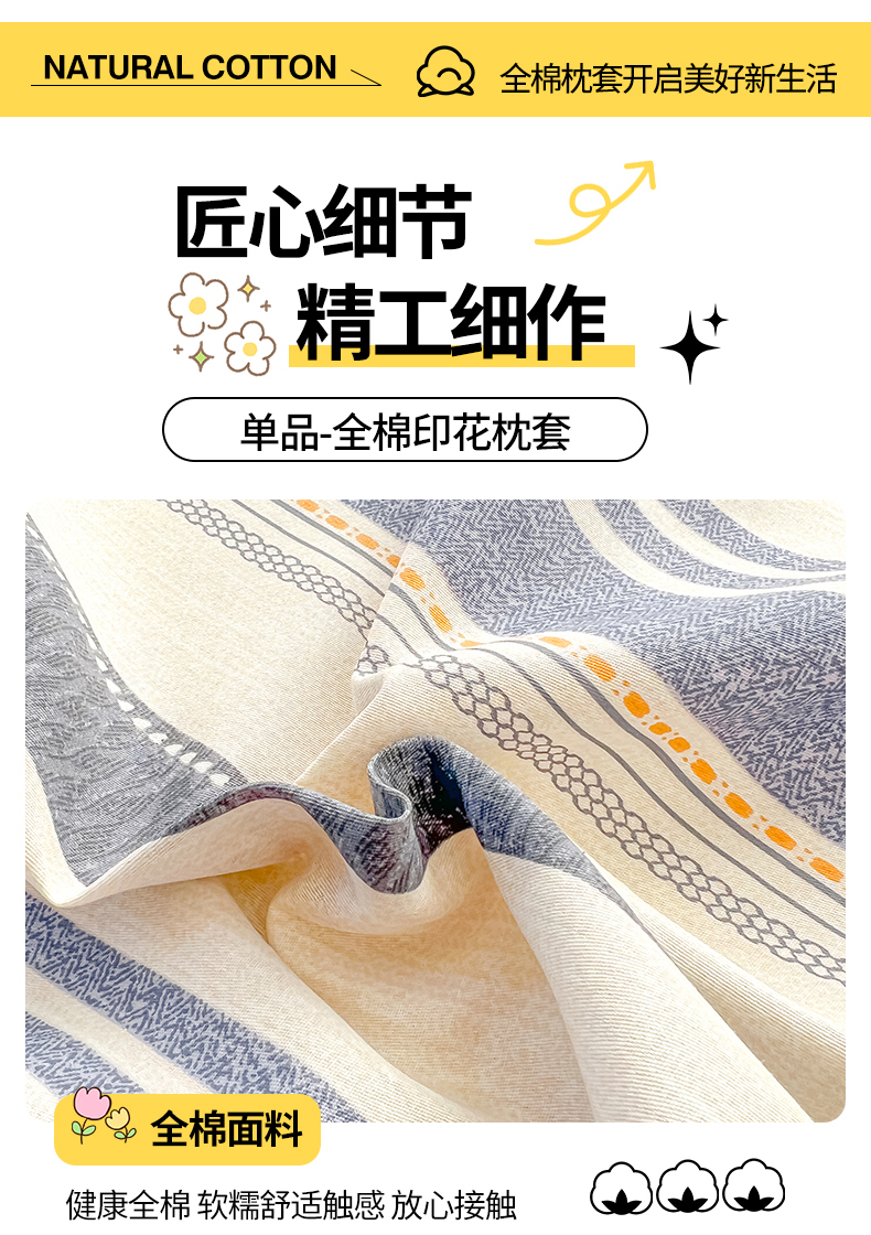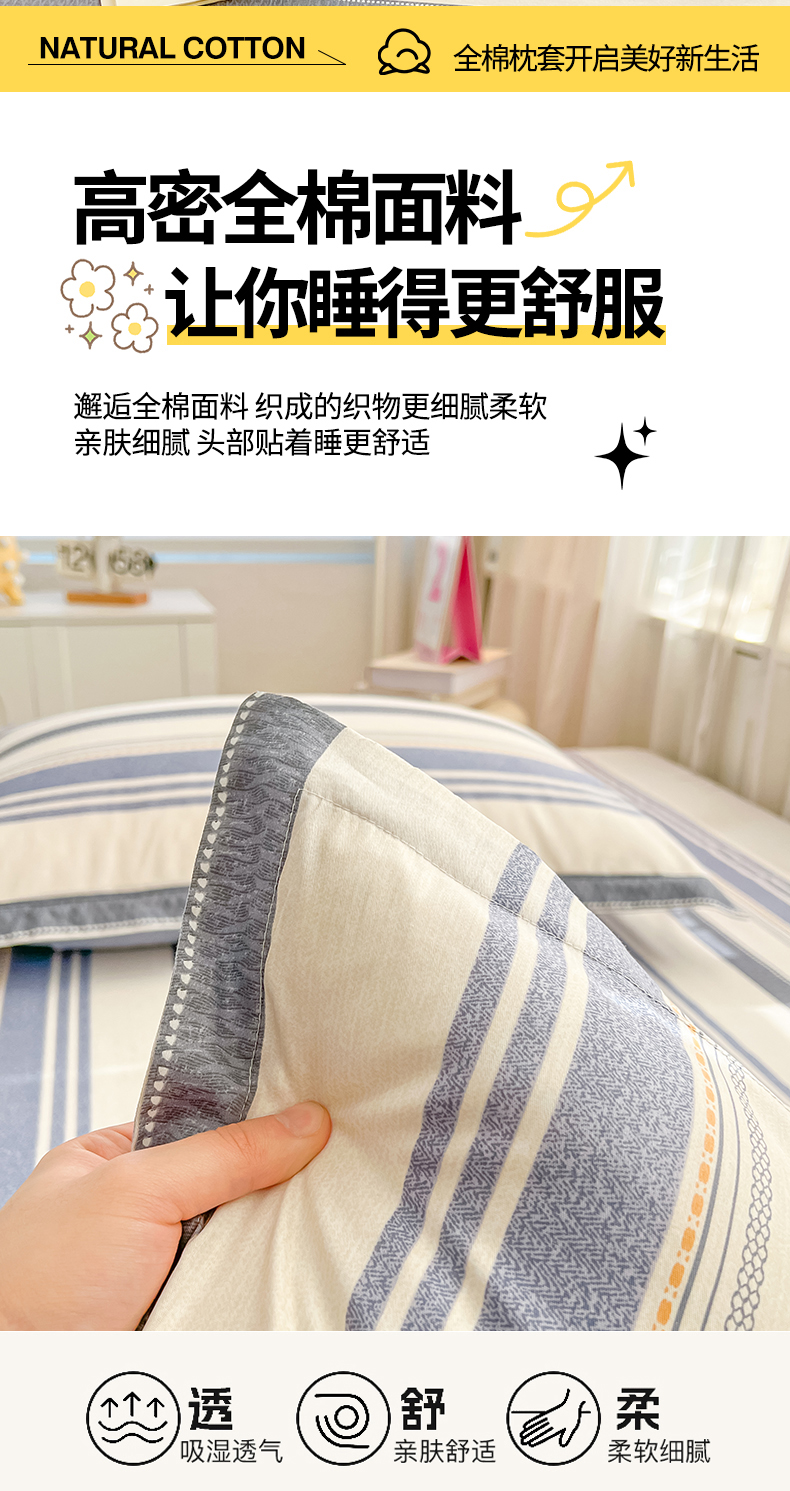 珂博家纺 2026新款12868全棉纯棉小清新印花系列枕套单件单枕套 潮流前线