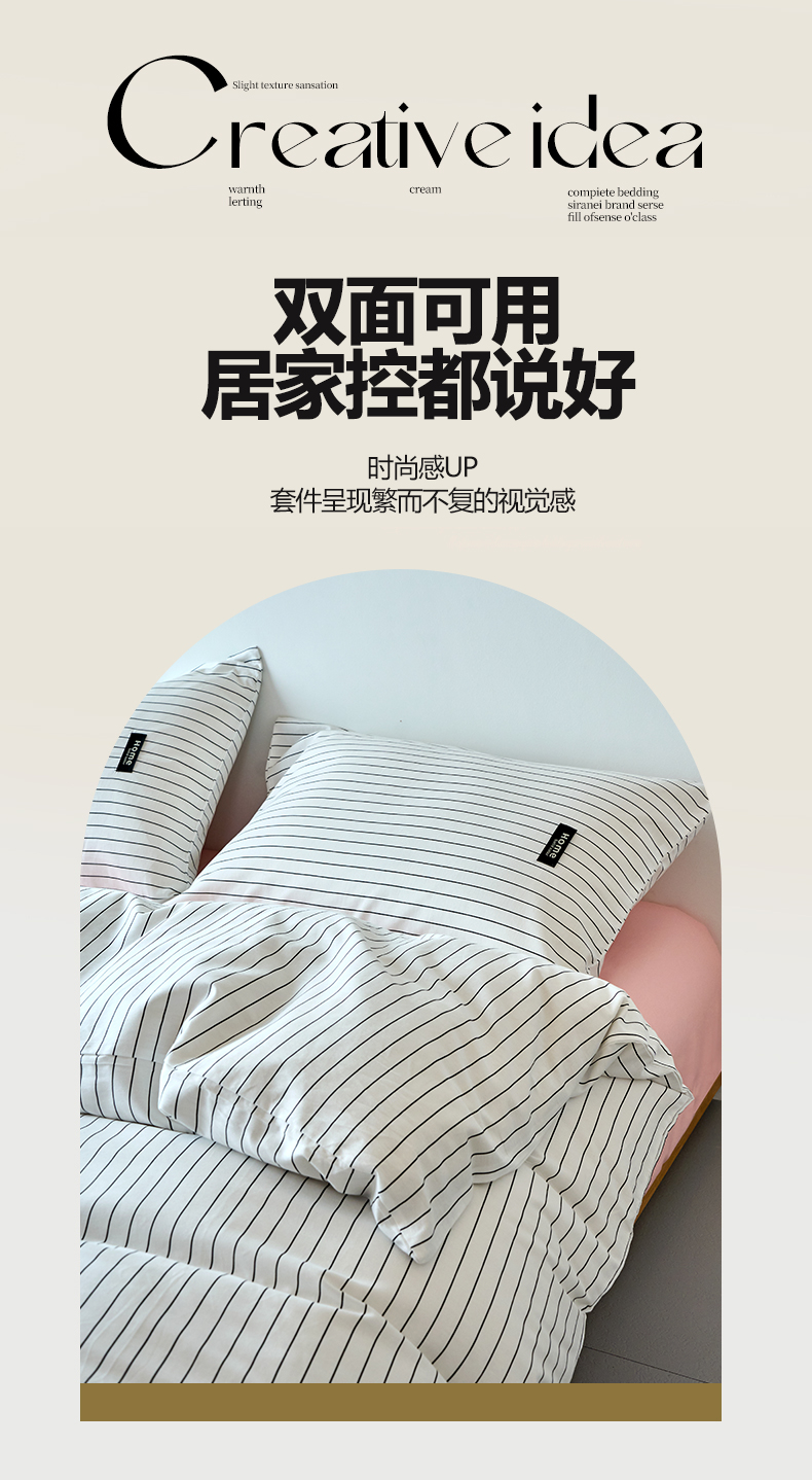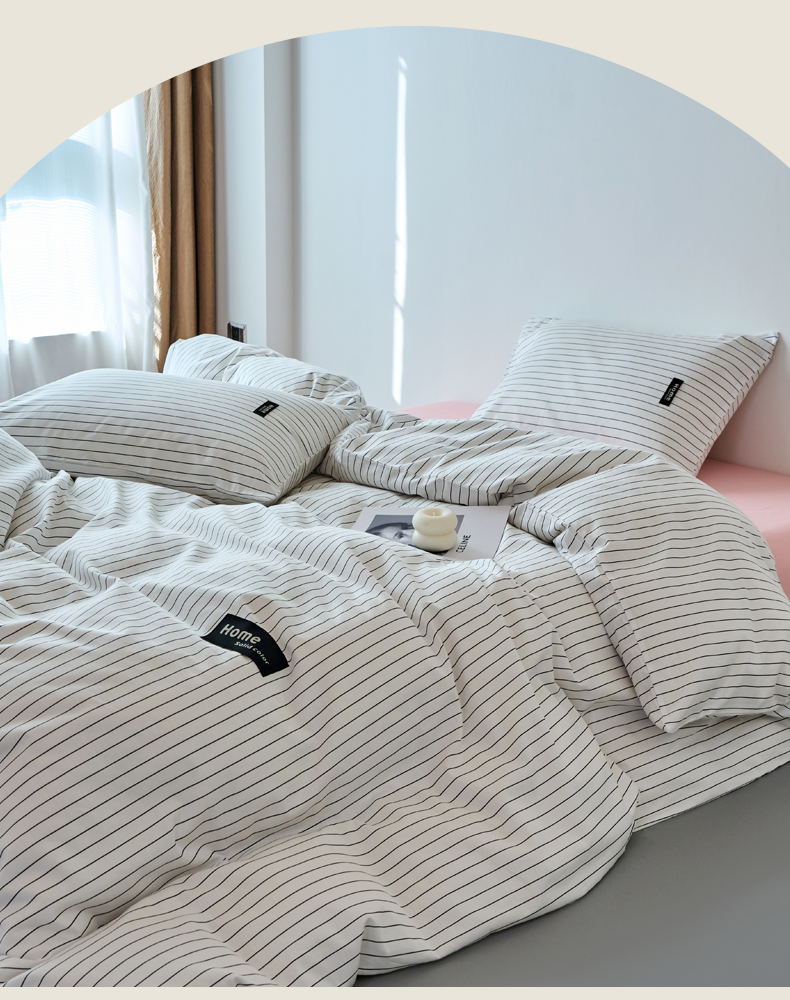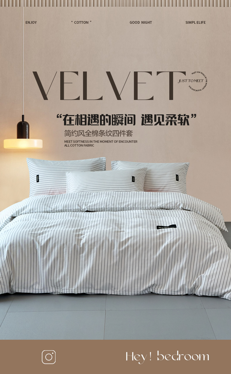 当前位置: 91家纺网 > 商品网购 > 床品套件 > 四件套 > 全棉普通四件套 > 兰紫橙家纺 2026新款简约风全棉条纹四件套 南星