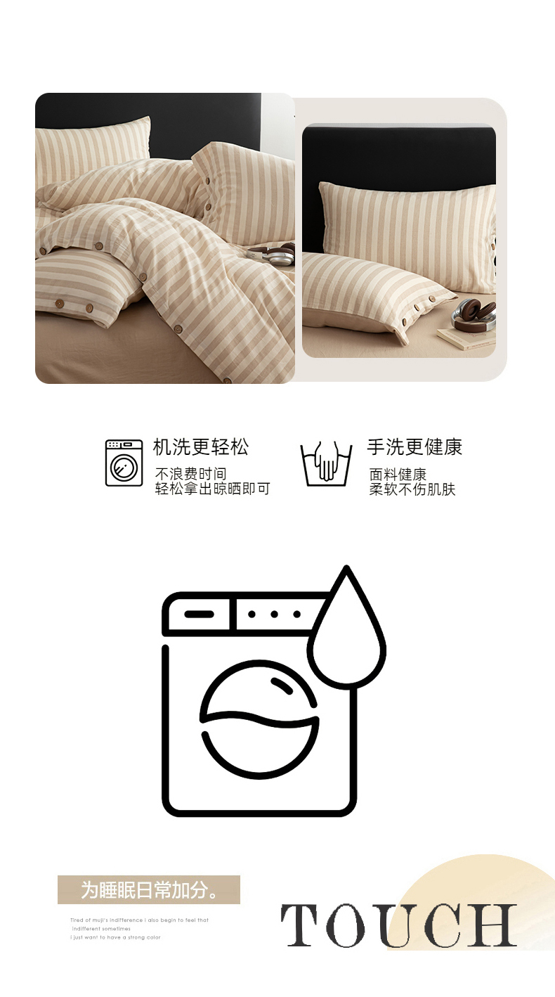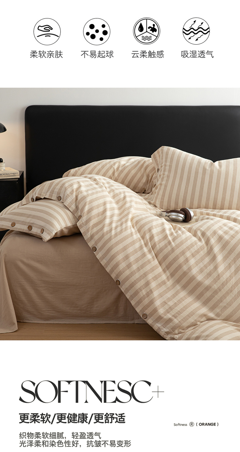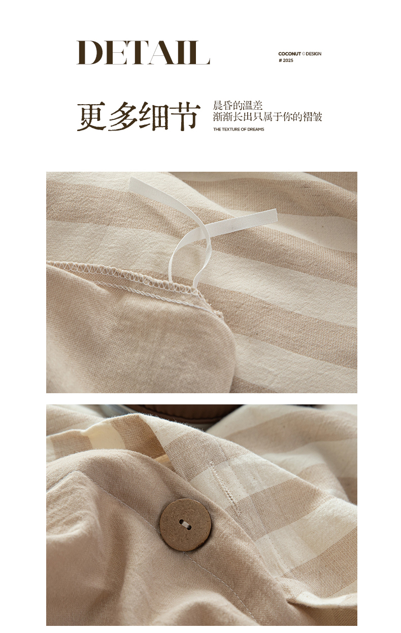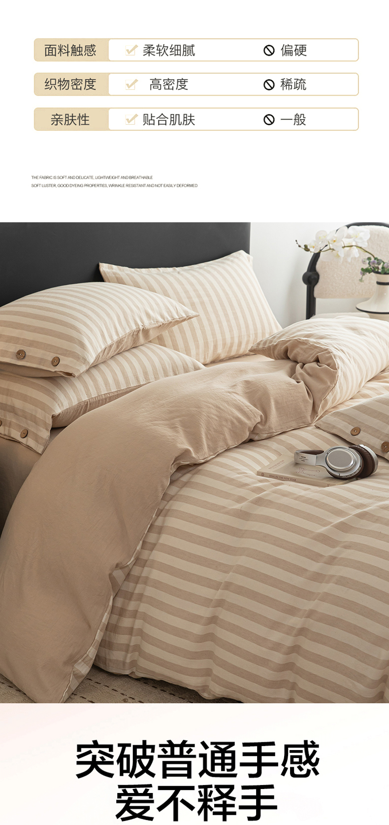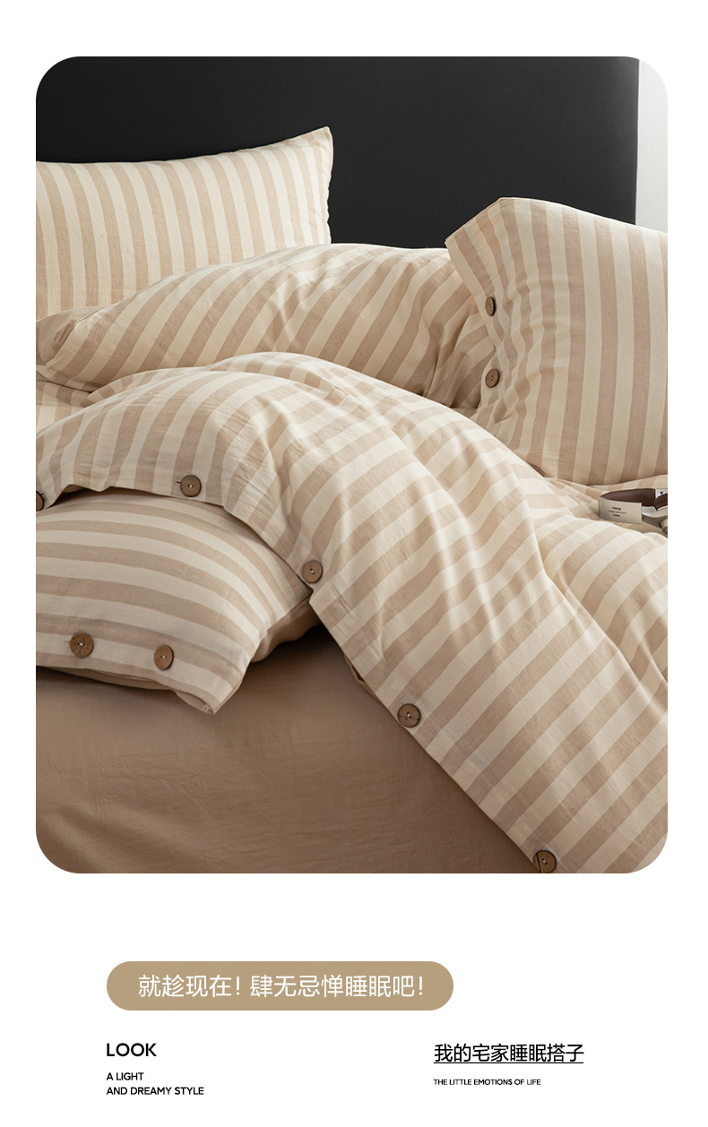 当前位置: 91家纺网 > 商品网购 > 床品套件 > 四件套 > 其它四件套 > 简宜家居(朝初家纺) 2026新款棉麻四件套-条纹格子系列 咖条-暖梦
