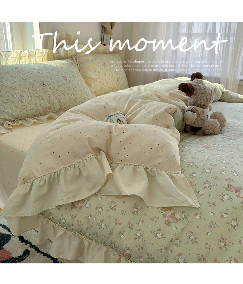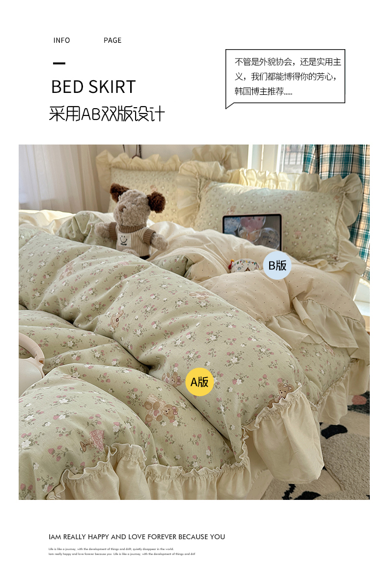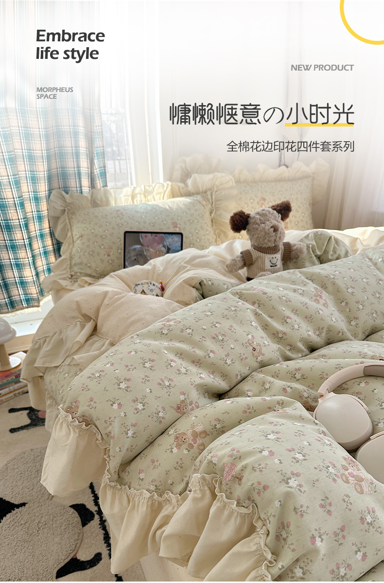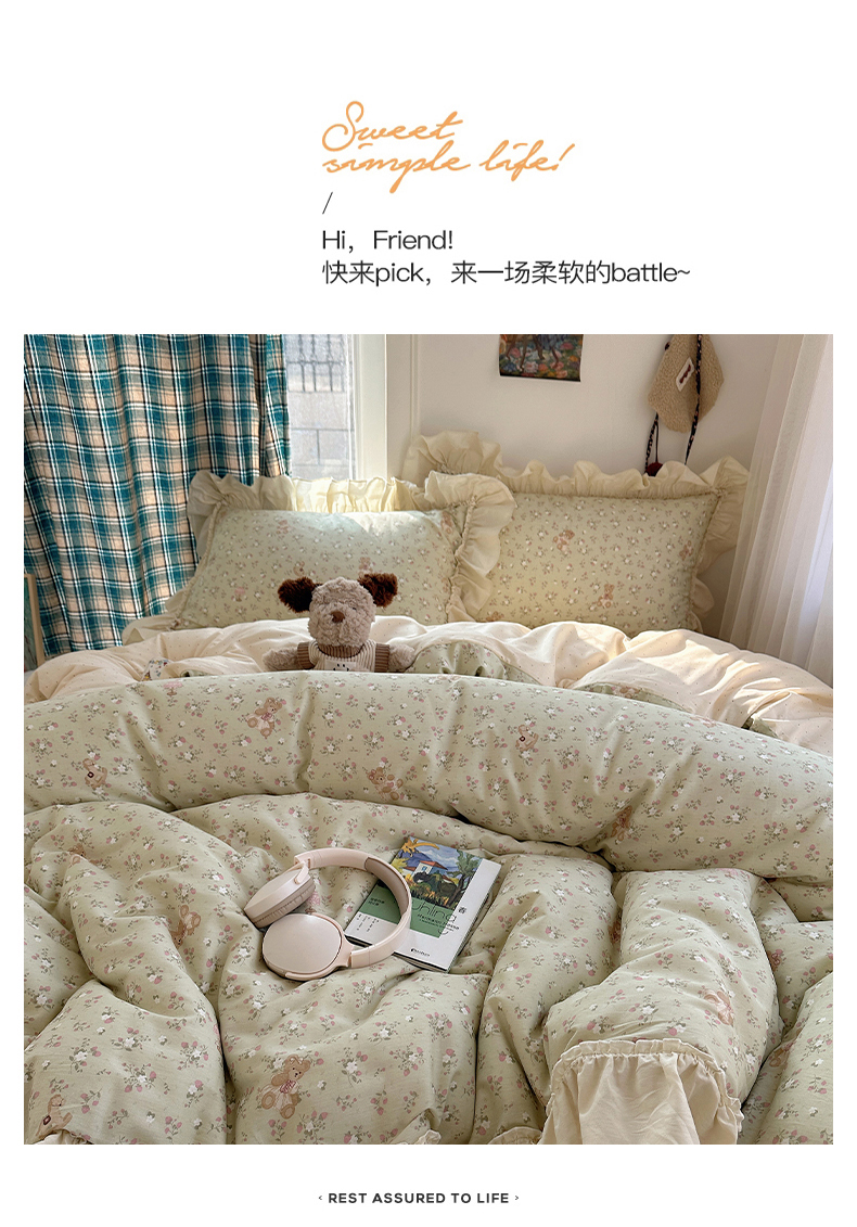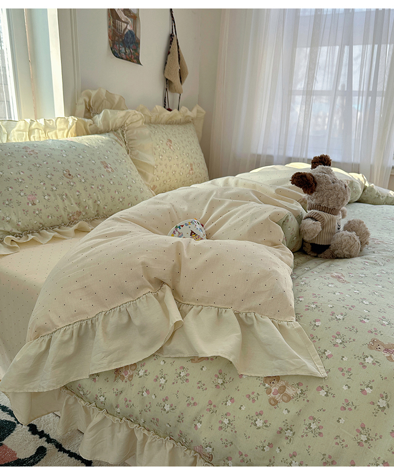 当前位置: 91家纺网 > 商品网购 > 床品套件 > 四件套 > 全棉普通四件套 > 瑞莱 2026春夏新款全棉纯棉印花韩系卡通花边四件套 草莓小熊
