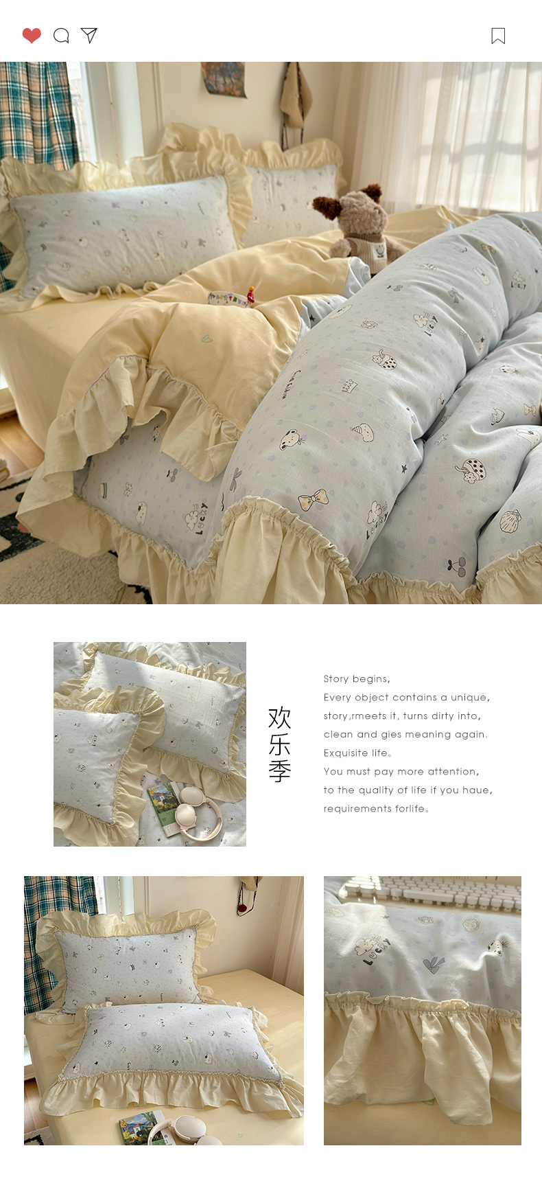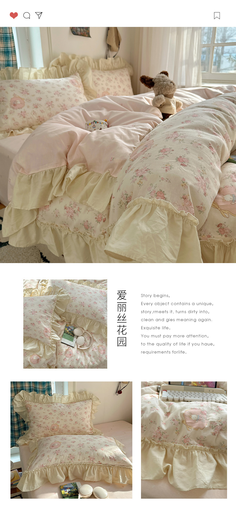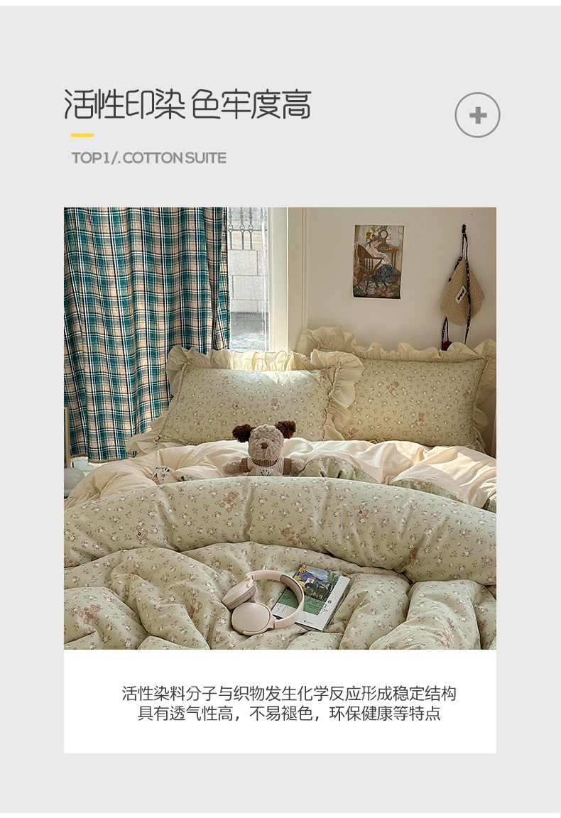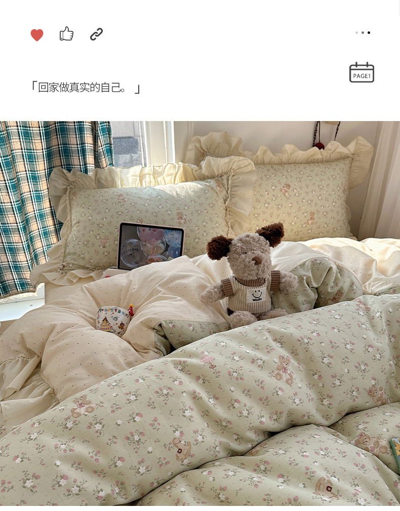当前位置: 91家纺网 > 商品网购 > 床品套件 > 四件套 > 全棉普通四件套 > 瑞莱 2026春夏新款全棉纯棉印花韩系卡通花边四件套 草莓小熊
