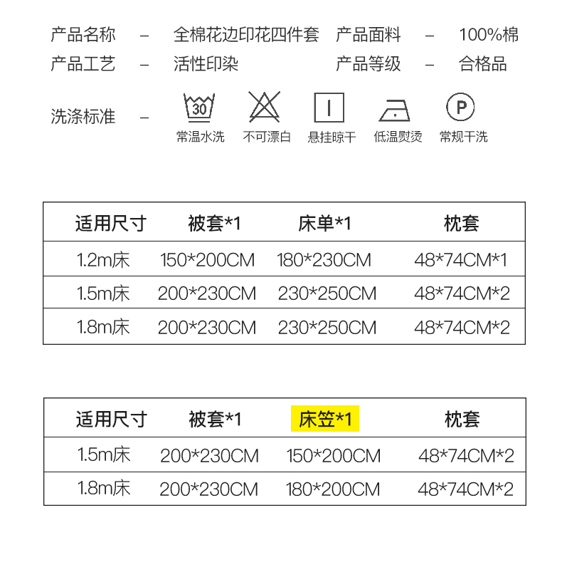 【床笠款】1.5四件套-被套200x230 | ¥120.00 |