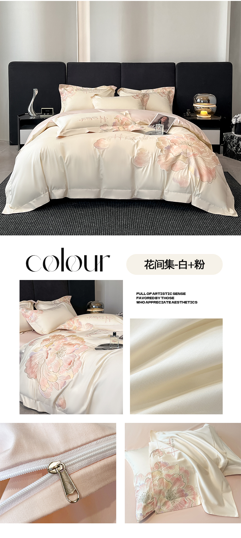 当前位置: 91家纺网 > 商品网购 > 床品套件 > 四件套 > 普通磨毛四件套 > 置顶家纺 2026春夏新款130克磨毛花间集刺绣小清新四件套-风格一 花间集-白+粉