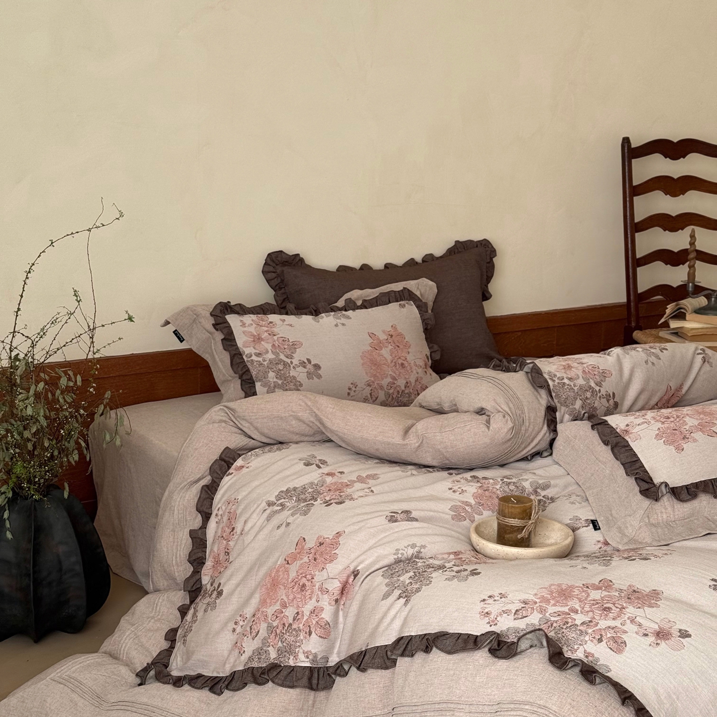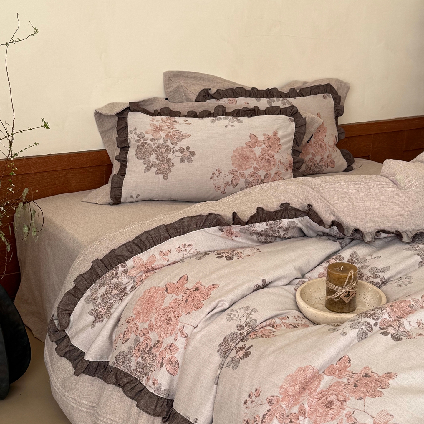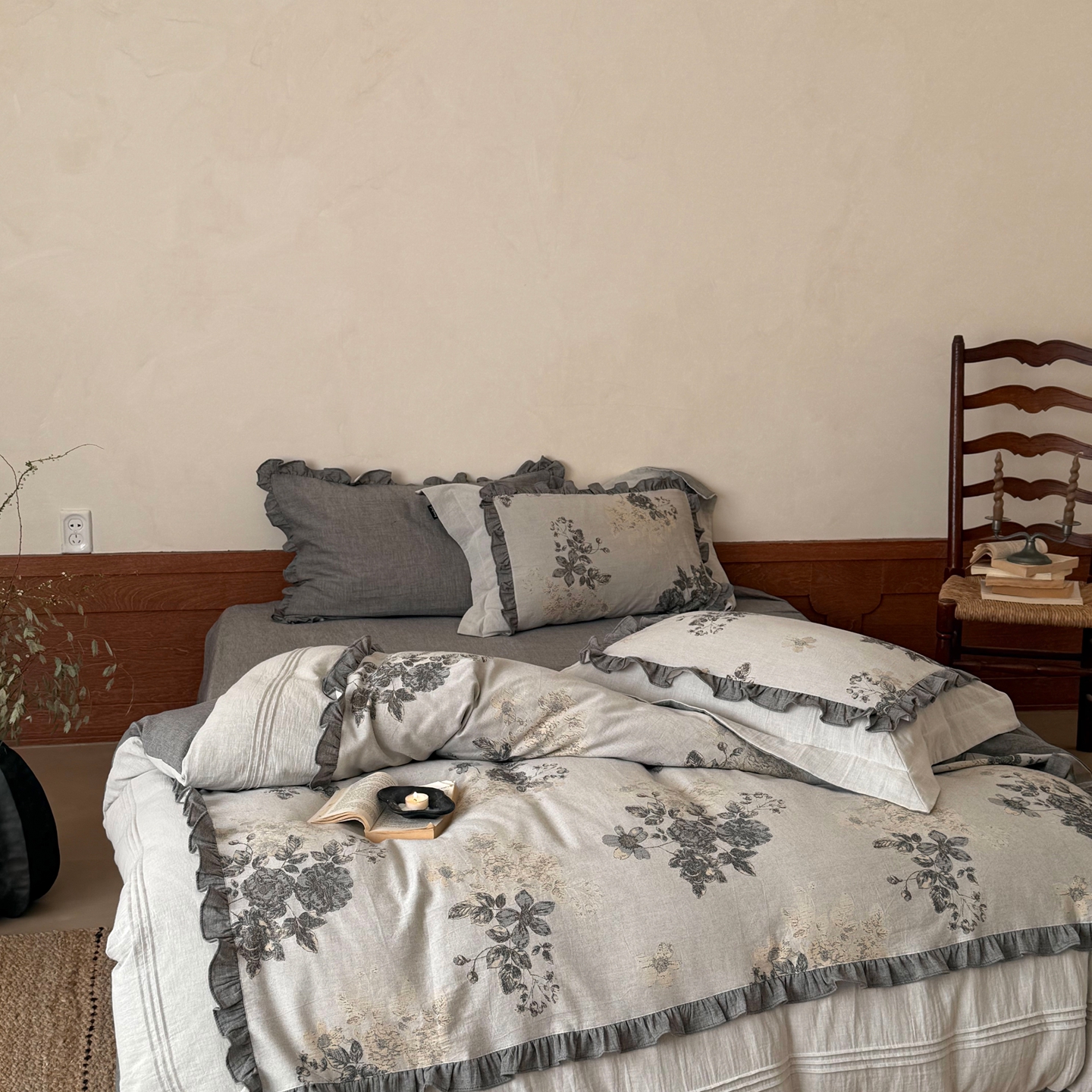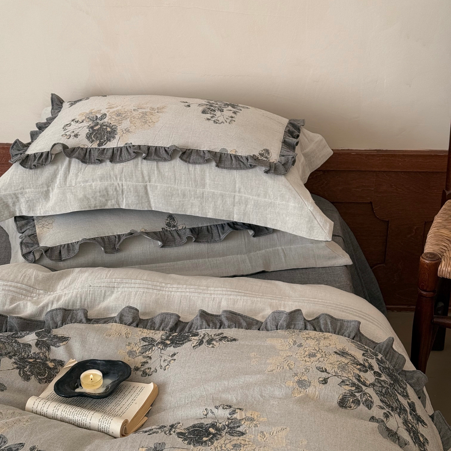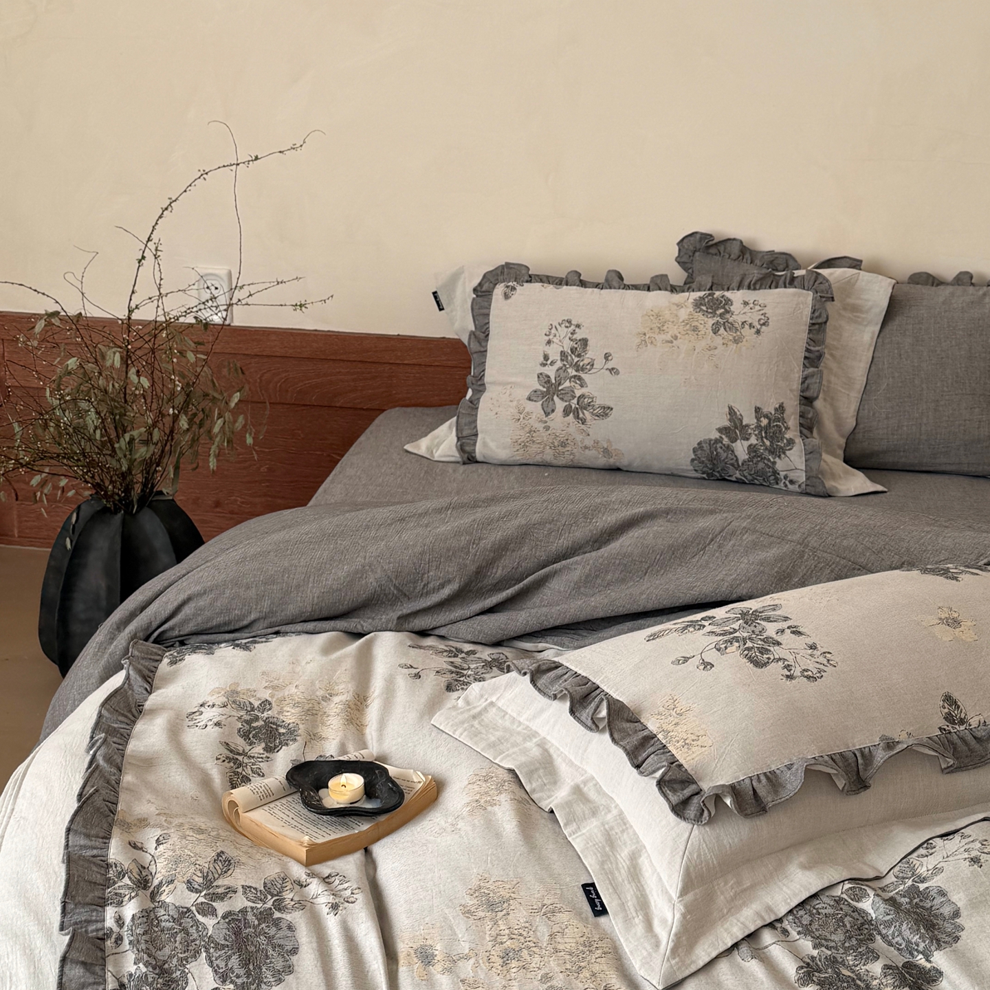 佳汐蓝家纺 2026春夏新款全棉纯棉复古大提花皱皱双层纱四件套-十里蔷薇 控价:卷后不低于398 十里蔷薇-灰色