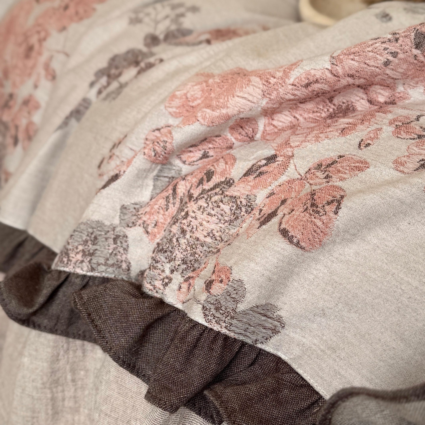 (总)佳汐蓝家纺 2026春夏新款全棉纯棉复古大提花皱皱双层纱四件套-十里蔷薇 控价:卷后不低于398,十里蔷薇-灰色,十里蔷薇-暖咖