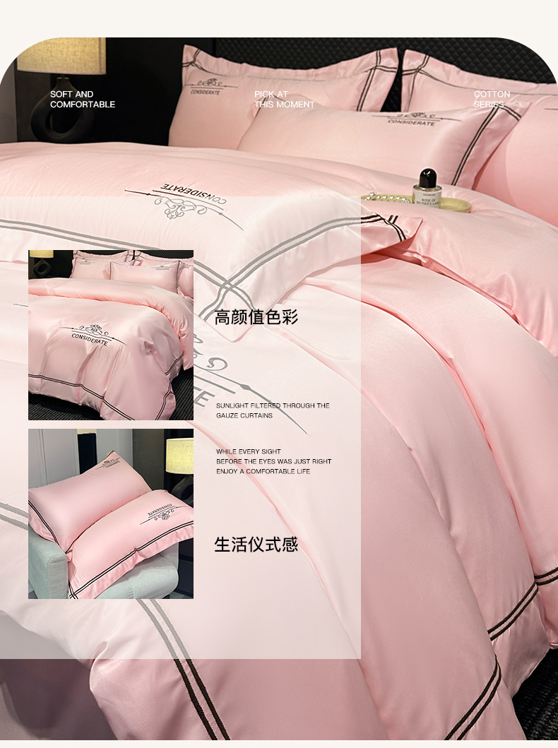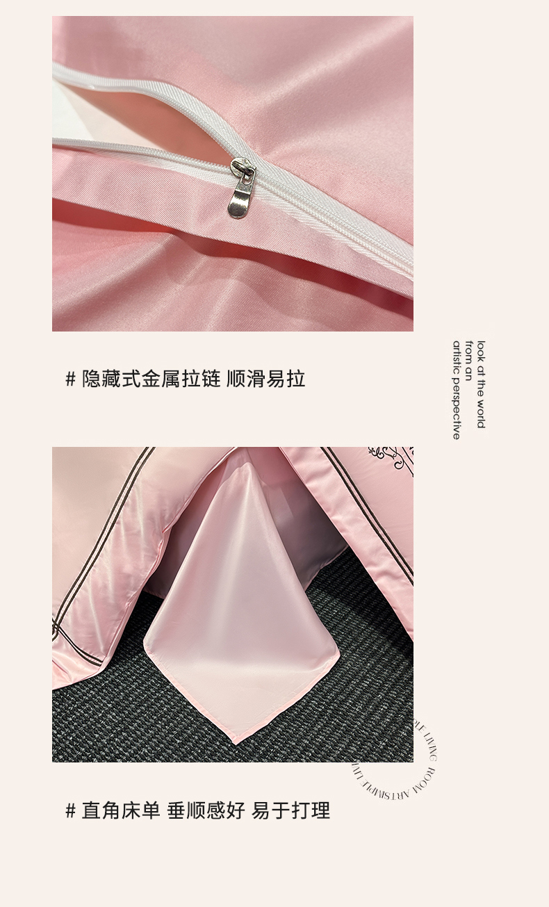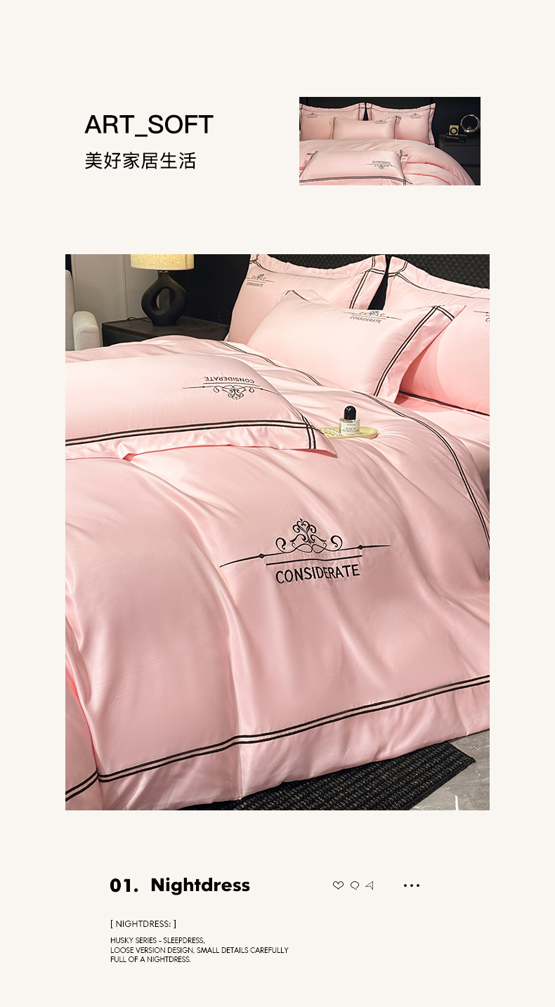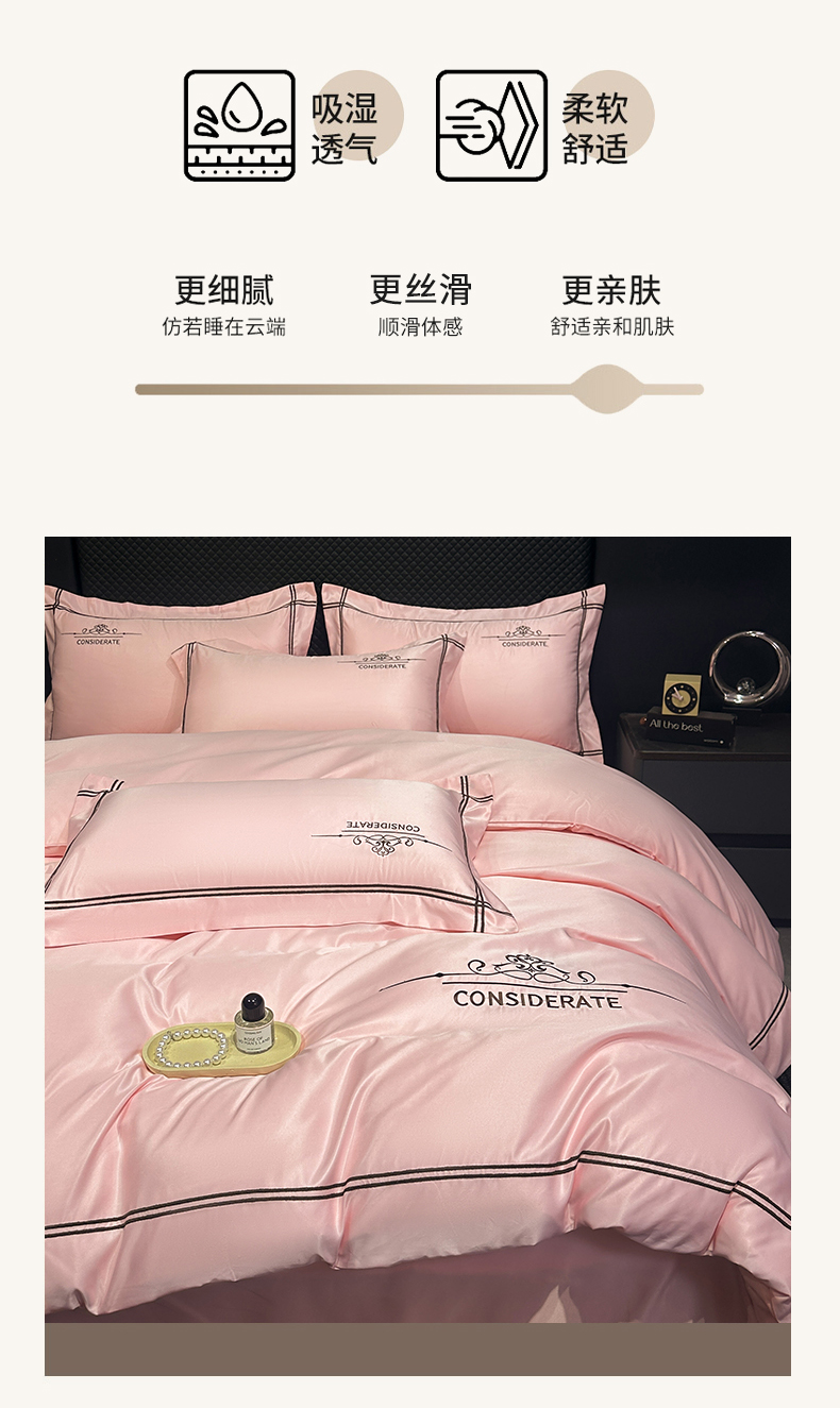 商品名称:绒掌柜家纺(品质焕新) 2026新款水洗真丝天丝冰丝刺绣四件套-典雅系列 少女粉