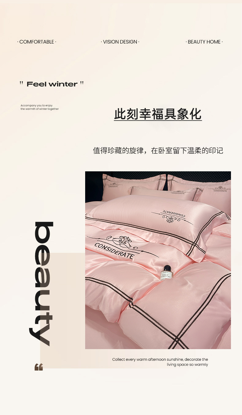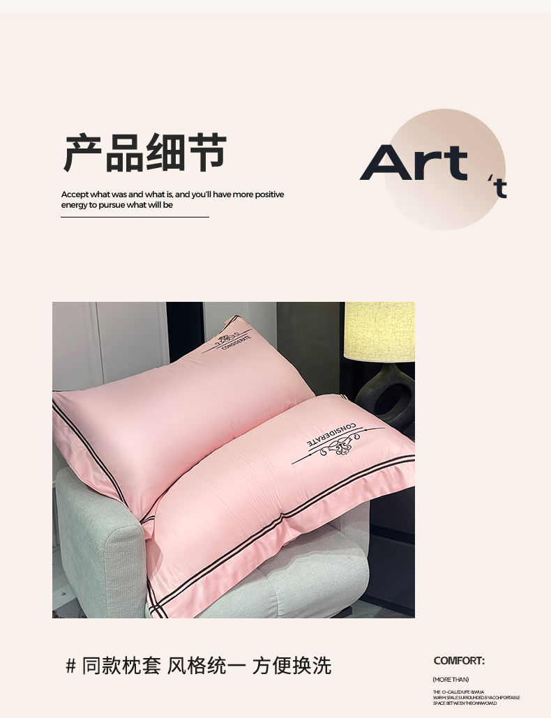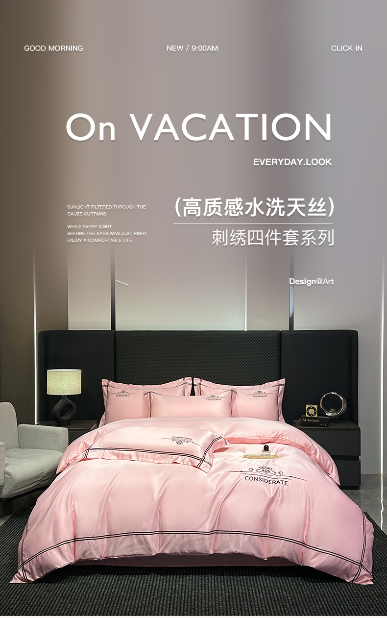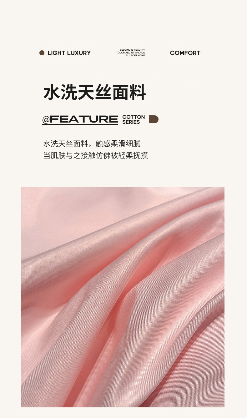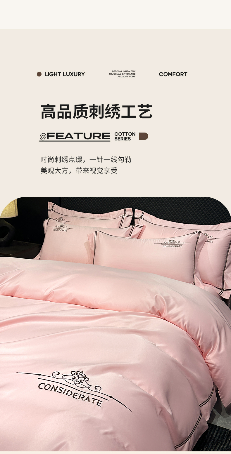 商品名称:绒掌柜家纺(品质焕新) 2026新款水洗真丝天丝冰丝刺绣四件套-典雅系列 少女粉