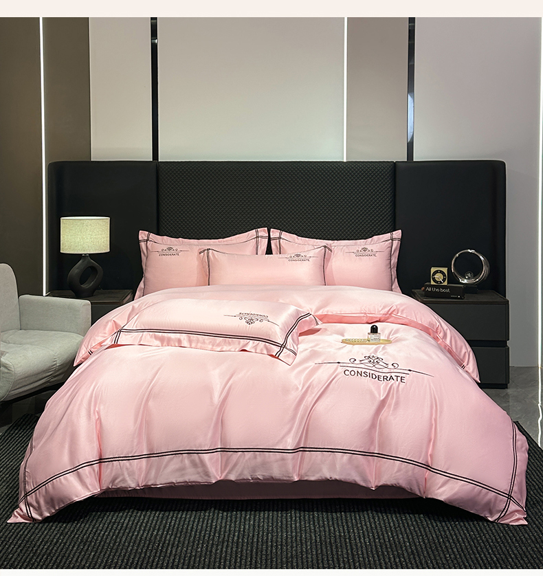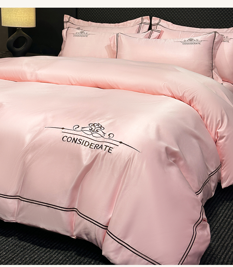 绒掌柜家纺(品质焕新) 2026新款水洗真丝天丝冰丝刺绣四件套-典雅系列 少女粉
