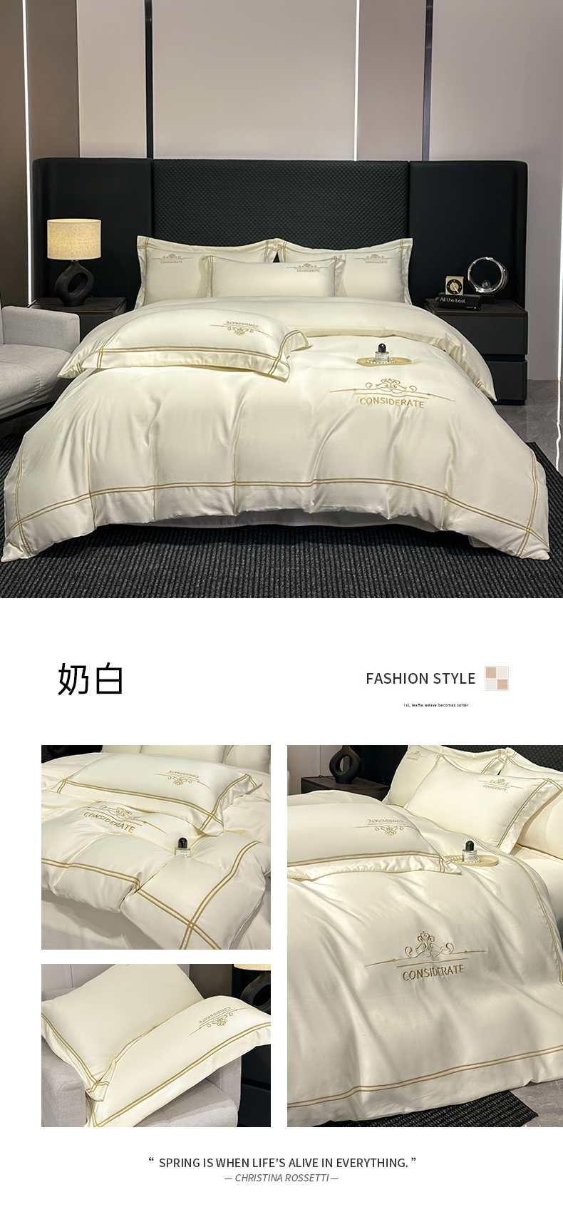 (总)绒掌柜家纺(品质焕新) 2026新款水洗真丝天丝冰丝刺绣四件套-典雅系列,宾利蓝,高级灰,墨绿,奶白,浅灰,少女粉,香槟,珍珠白