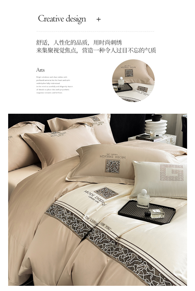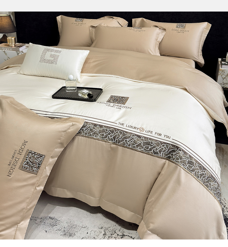 商品名称:苏美 2026春夏新款高档礼盒装50*50S贡缎长绒棉刺绣四件套100%纯棉全棉轻奢床品-星空 星空-咖