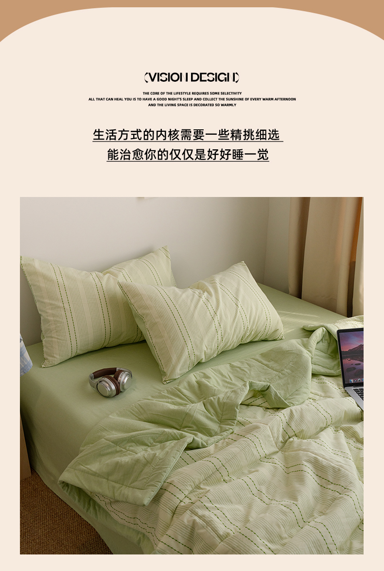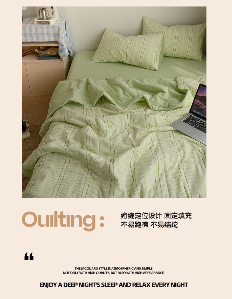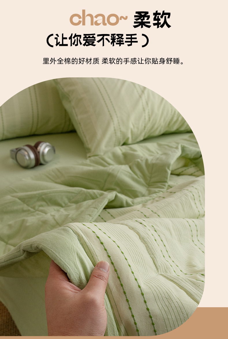 当前位置: 91家纺网 > 商品网购 > 床品套件 > 四件套 > 夏被四件套 > 被窝家纺 2026新款米粒提花全棉水洗棉新疆棉花夏被夏凉被空调被四件套 米粒-嫩绿
