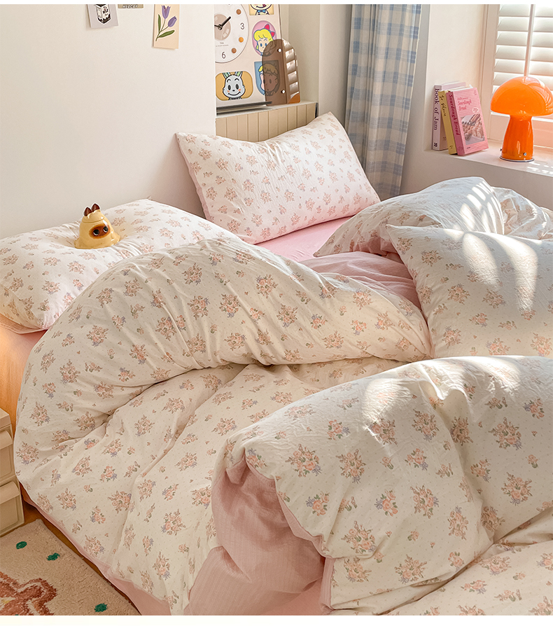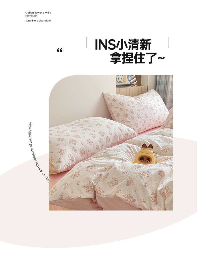 当前位置: 91家纺网 > 商品网购 > 床品套件 > 四件套 > 水洗棉四件套 > 云玲时尚 2026新款古法水洗仿棉云感纱四件套 爱心甜猫