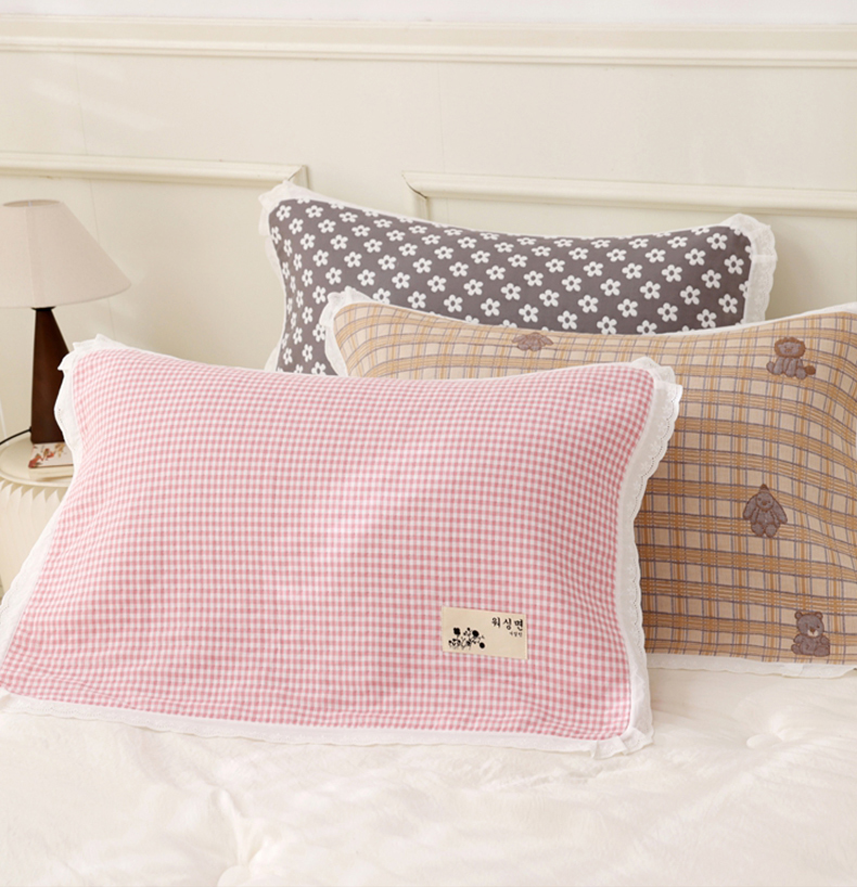当前位置: 91家纺网 > 商品网购 > 床上用品 > 枕巾垫巾 > 朴尔家纺-毛巾被 2025新款韩版小碎花边全棉纯棉三层纱布枕巾 韩式小格-粉