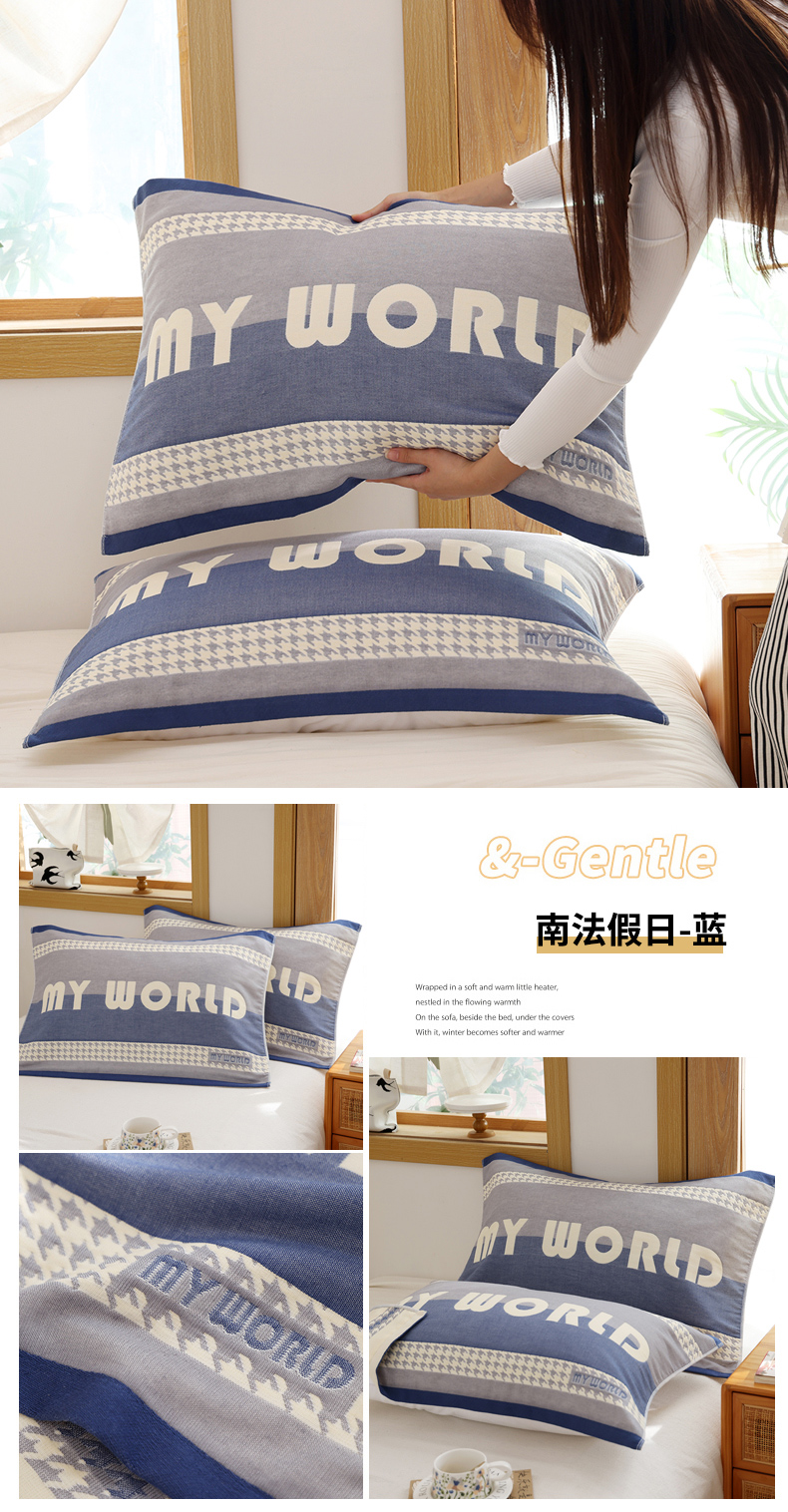 当前位置: 91家纺网 > 商品网购 > 床上用品 > 枕巾垫巾 > 朴尔家纺-毛巾被 2026新款格致系列全棉纯棉加厚六层纱布枕巾 自然风-蓝