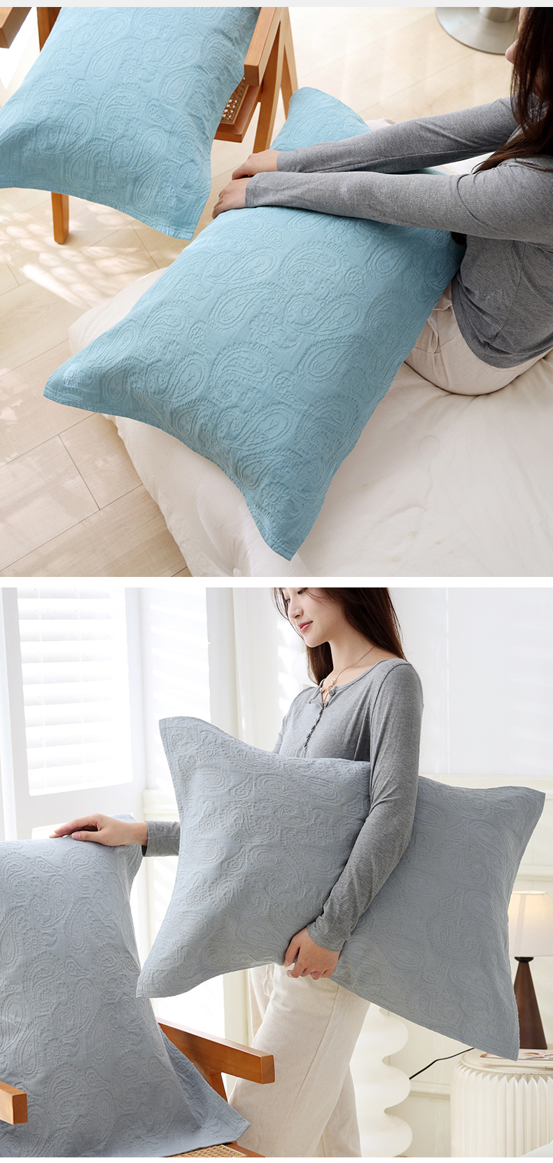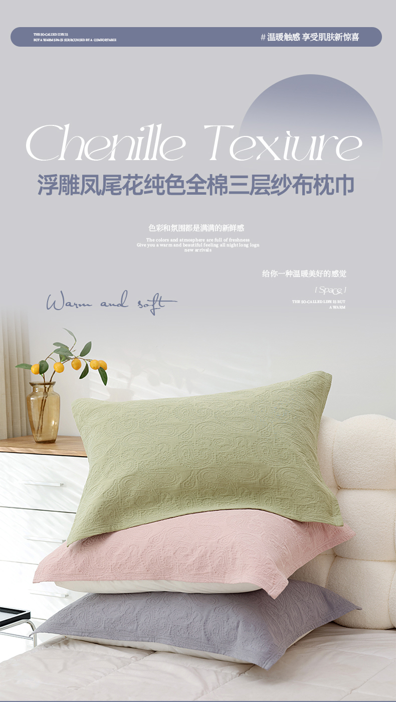当前位置: 91家纺网 > 商品网购 > 床上用品 > 枕巾垫巾 > 朴尔家纺-毛巾被 2026新款浮雕凤尾花纯色全棉纯棉三层纱布枕巾 组合图(仅供展示不可下单)