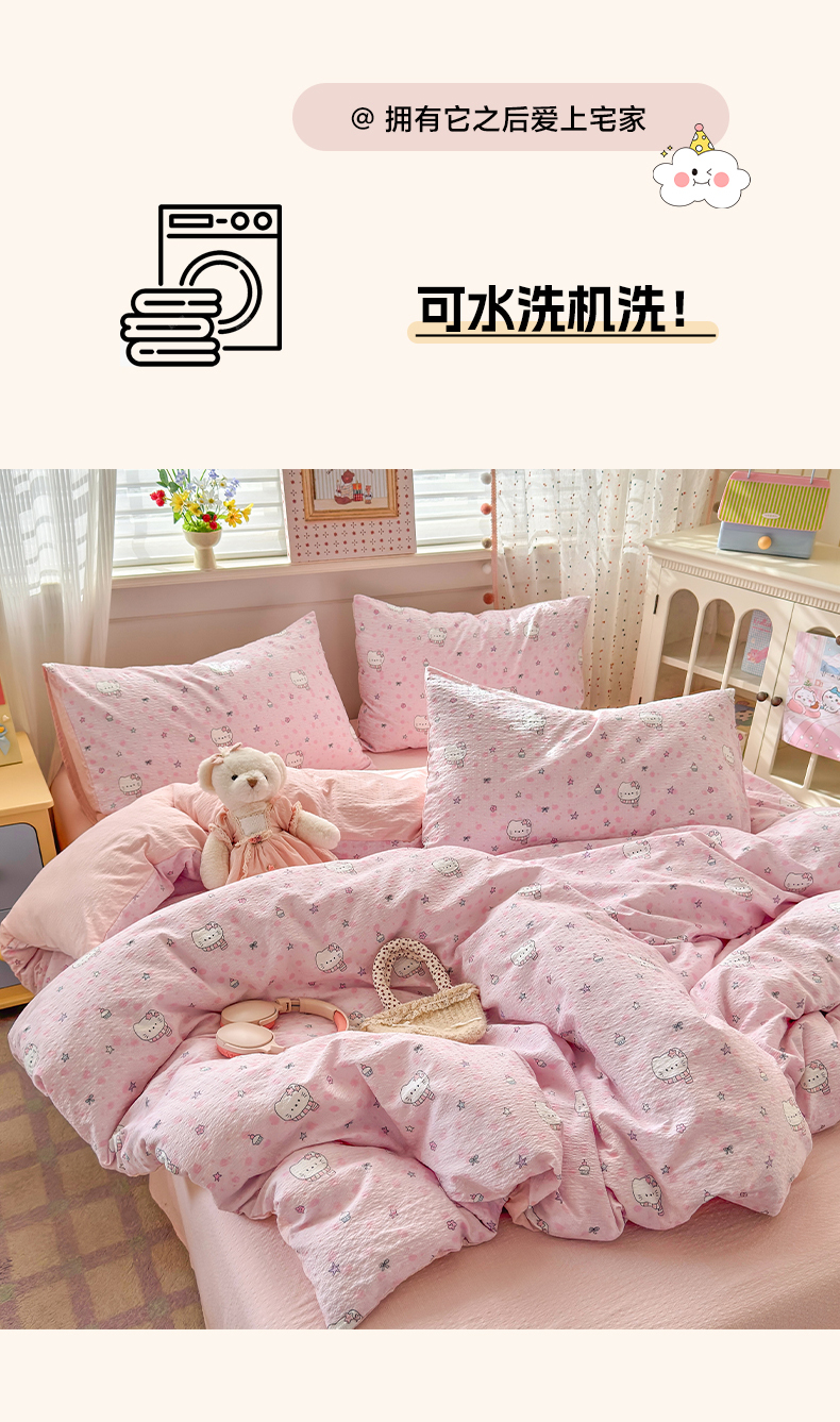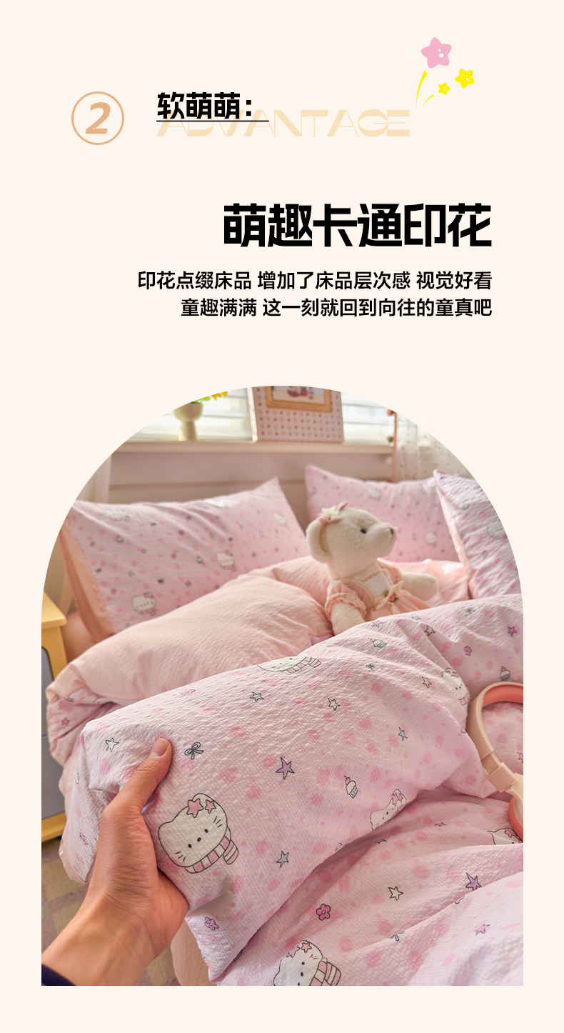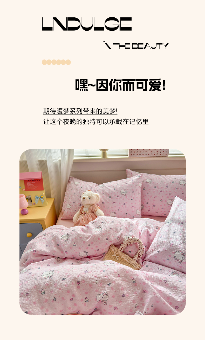 当前位置: 91家纺网 > 商品网购 > 床品套件 > 四件套 > 其它四件套 > 优承佳生活馆 2026年新款卡通小清新风格高克重超柔软糯泡芙双层纱面料三件套四件套单被套系列 hello粉凯蒂